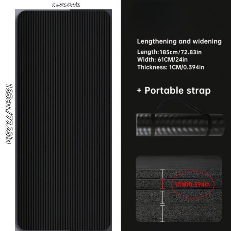 1 Extra Thick NBR Exercise Mat with Carry Strap | Wide Non-Slip Yoga Mat for Pilates, Workouts, Ideal for Hard Floors, Provides Excellent Joint Protection