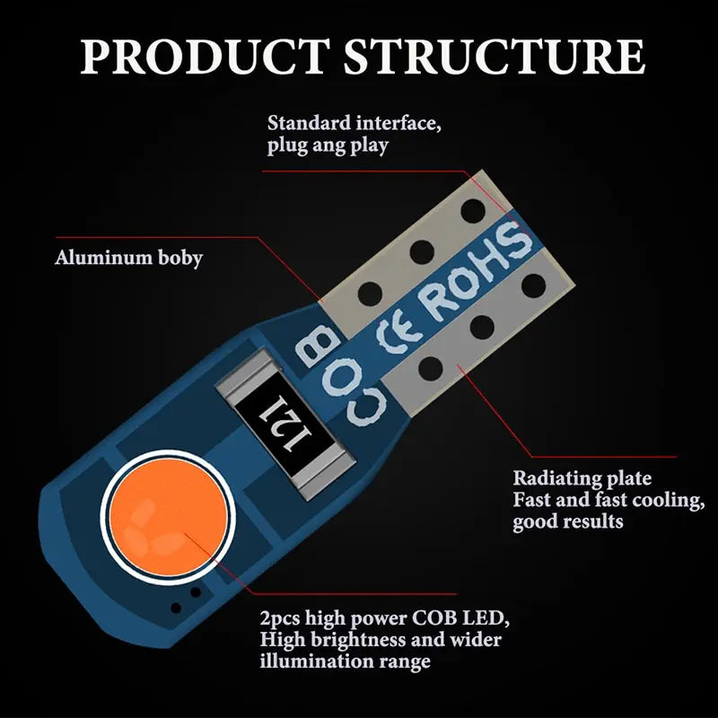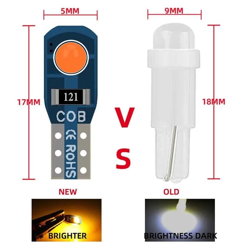 10PCS T5 W3W Bulb COB 2SMD Car Interior Lights Super Bright Dashboard Warning Indicator 12V Wedge Auto Instrument Lamp