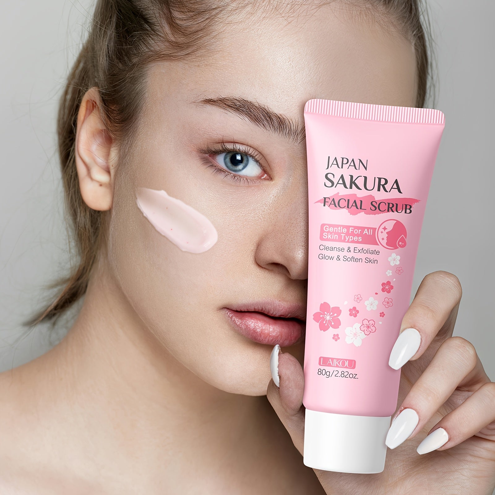 15PCS Set Japanese Sakura Facial Cleansing & Moisturizing with 5pcs Sleeping Mask, 5pcs Lip Mask, 50g Facial Wash, 80g Facial Scrub, Cute Hairband & Cleansing Brush, Gently Clean Skin, Free Gift Of Aloe Vera Foundation, Full