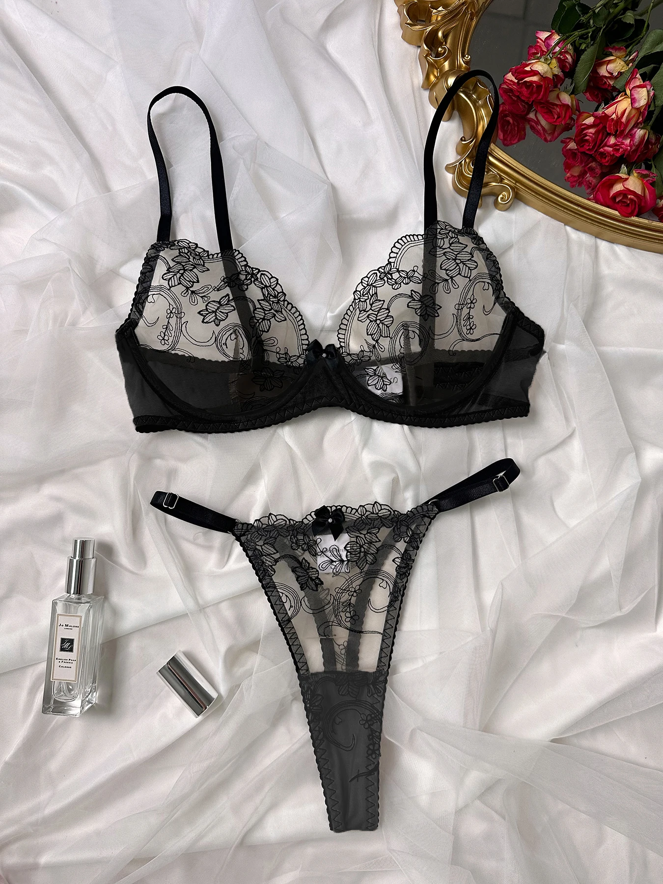 High-Quality Fashionable Women's Pop Flower Embroidery Steel Ring Gathered See-Through Erotic Lingerie Set Onlyfan