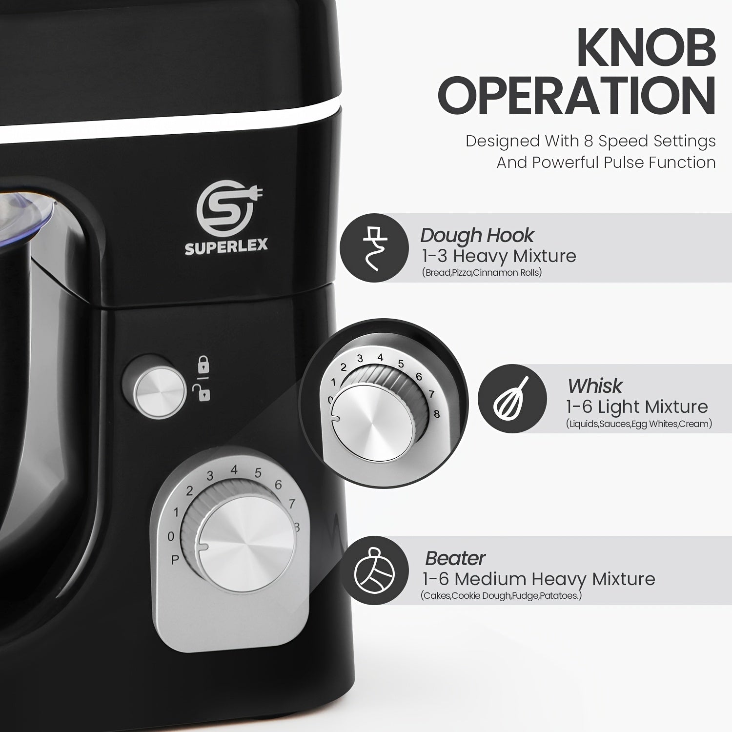 3-in-1 Stand Mixer 5L 1300W 8-Speed Kitchen Machine with Pulse, Stainless Steel Dough Hook Whisk & Eggbeater Attachments, Energy Class A+++ for Baking Cakes Bread, Black, Baking Essentials, Ergonomic Handle, Reliable Performa