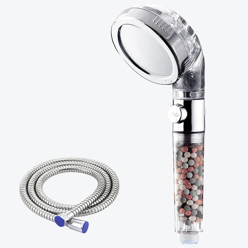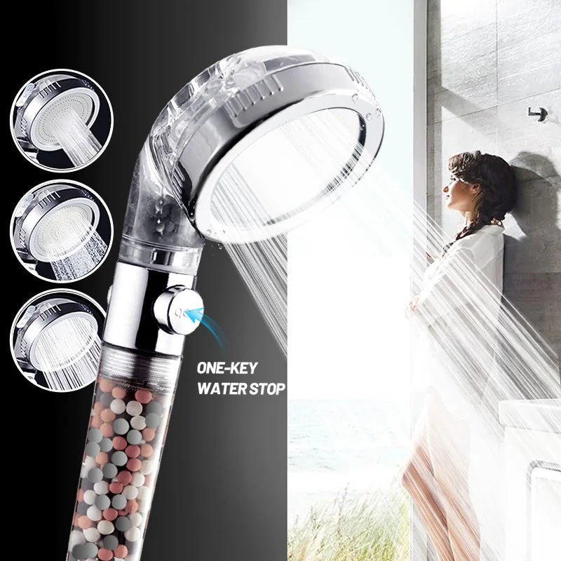 3 Modes Adjustable High Pressure Shower Head SPA Shower Water Saving Filter Balls Replaceable Switch Button One Key Stop Shower