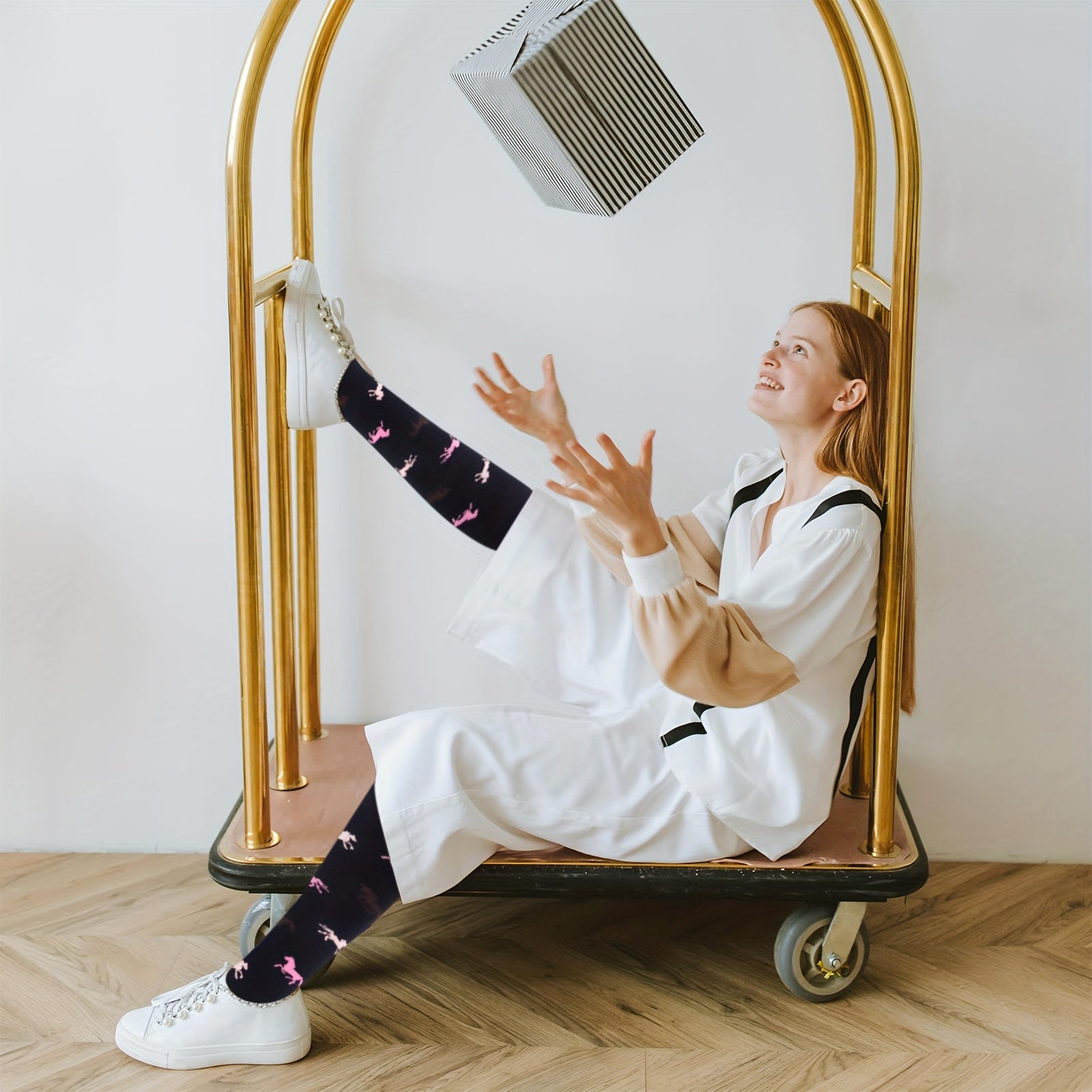 3 Pairs Set Horse Riding Knee-High Socks - Equestrian-Themed with Horses, Jockeys & Western Cowgirl Boots Print - One Size Fits 6-9/ 6-9/EU 39-42 - Soft Durable Novelty Gift for,, Moms & Horse, for Teenager
