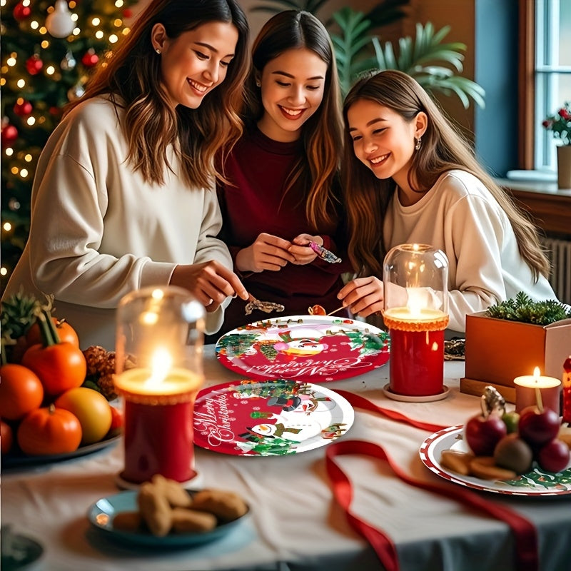 30pcs Festive Christmas Party Tableware Set - 22.86cm & 17.78cm Snowman Themed Paper Plates and Cups with "Merry Christmas" Design, Food-Safe Paper for Holiday Celebrations, Christmas Decorations, Perfect for Thanksgiving for