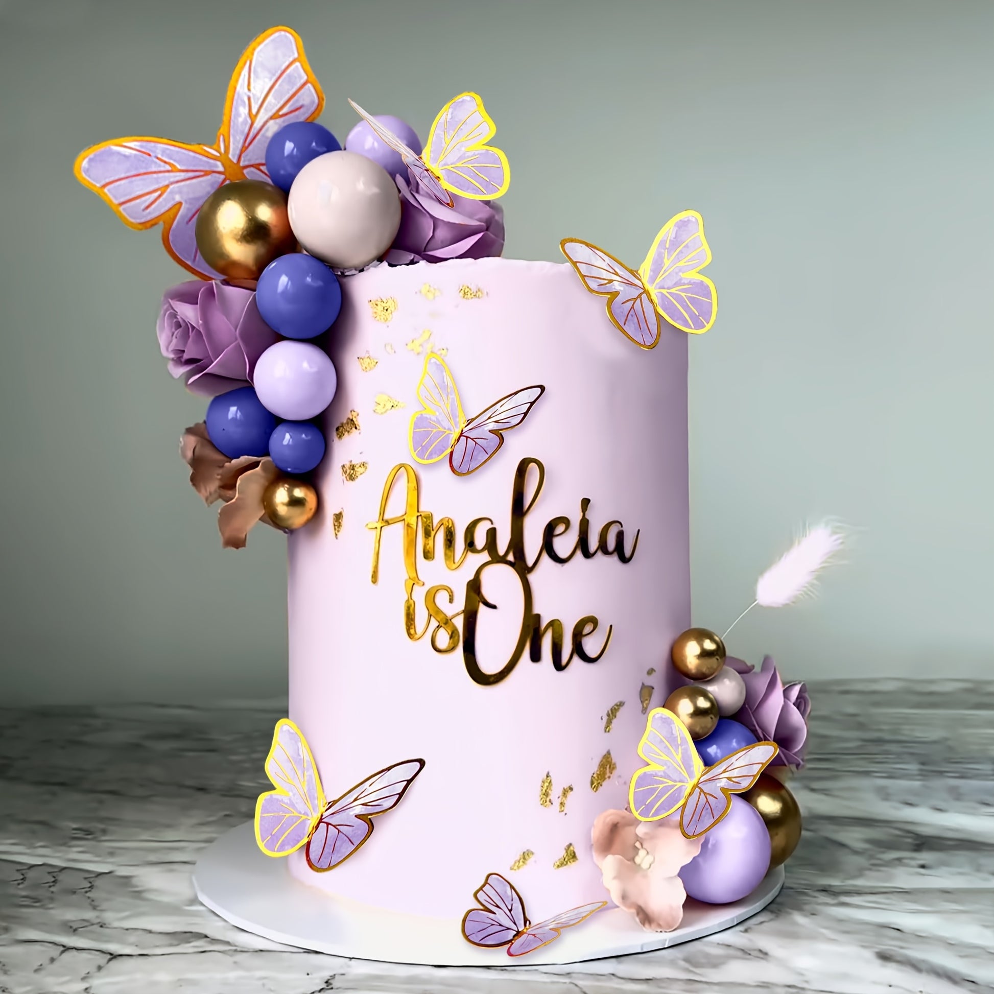 31pcs Purple Butterfly Cake Decorations with Golden Glitter Accents - Elegant Birthday Party Supplies for Baby Showers, Bridal Showers, Ladies' Theme Celebrations, Butterfly Cake Decorations, Celebration Dessert Decor, Prince