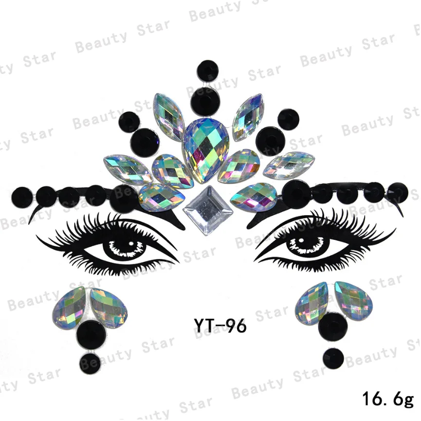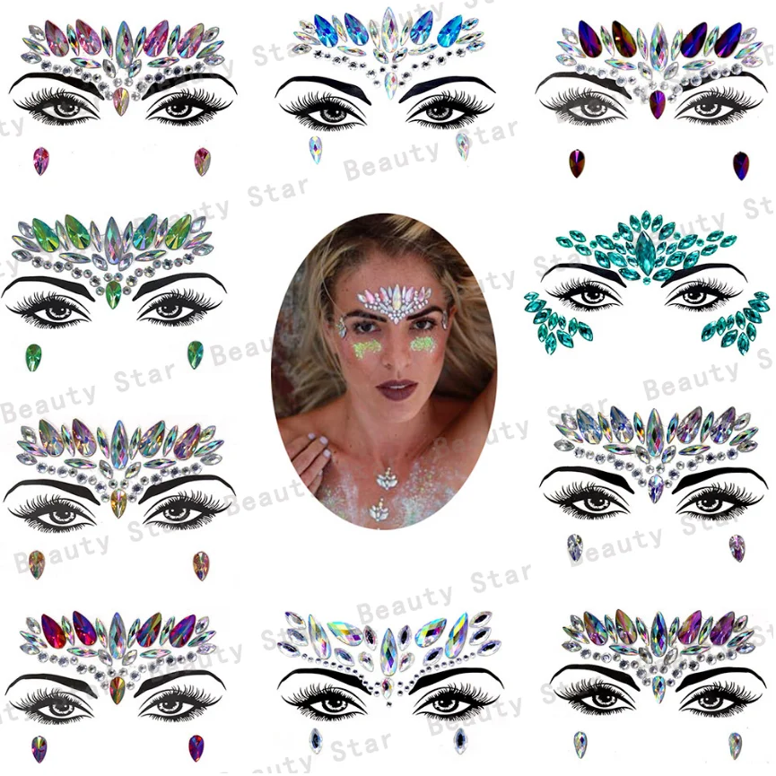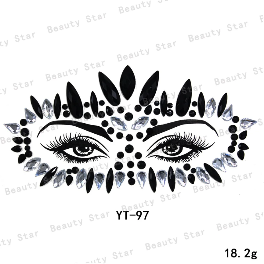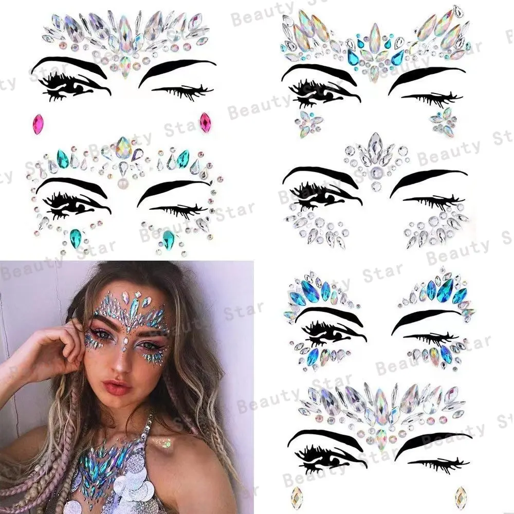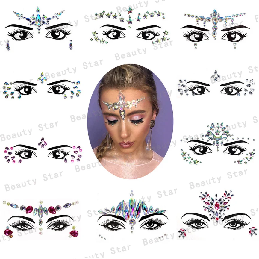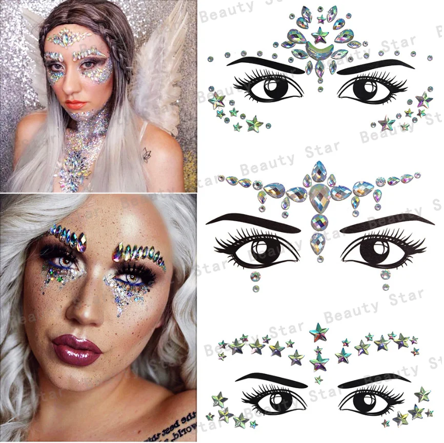 3D Sexy Face Tattoo Stickers Temporary Tattoos Glitter Fake Tattoo Rhinestones For Woman Party Face Jewels Tatoo