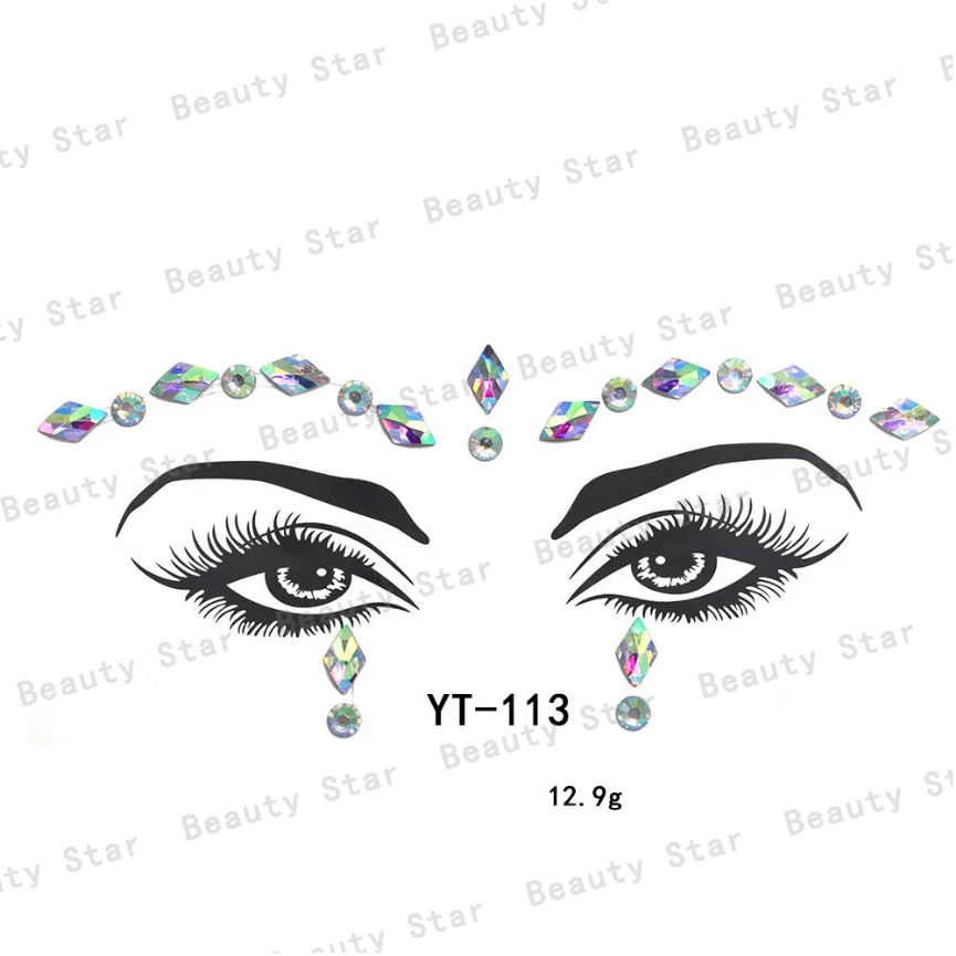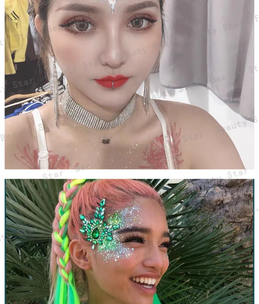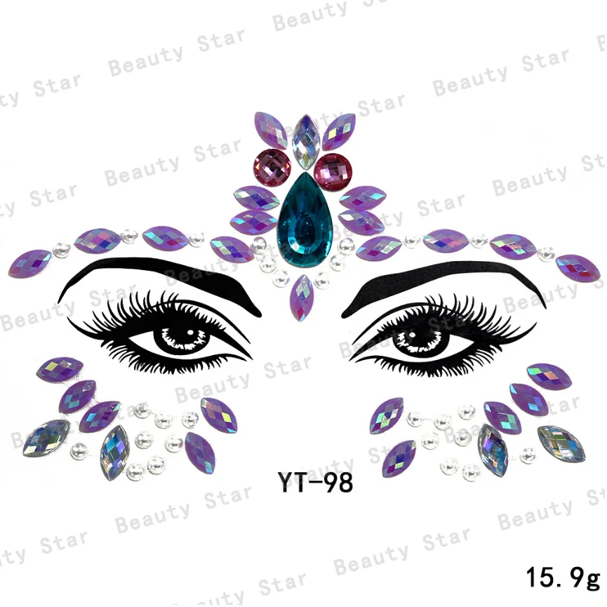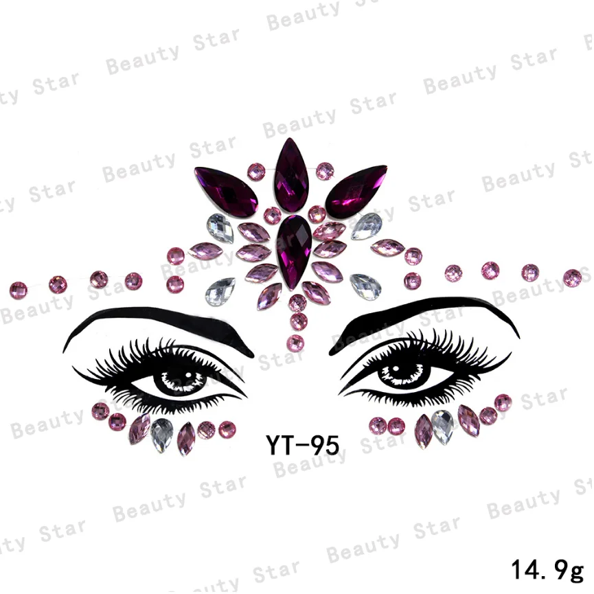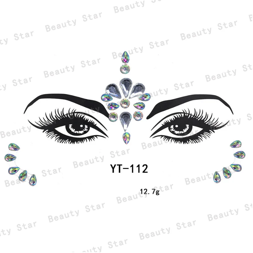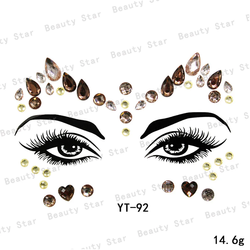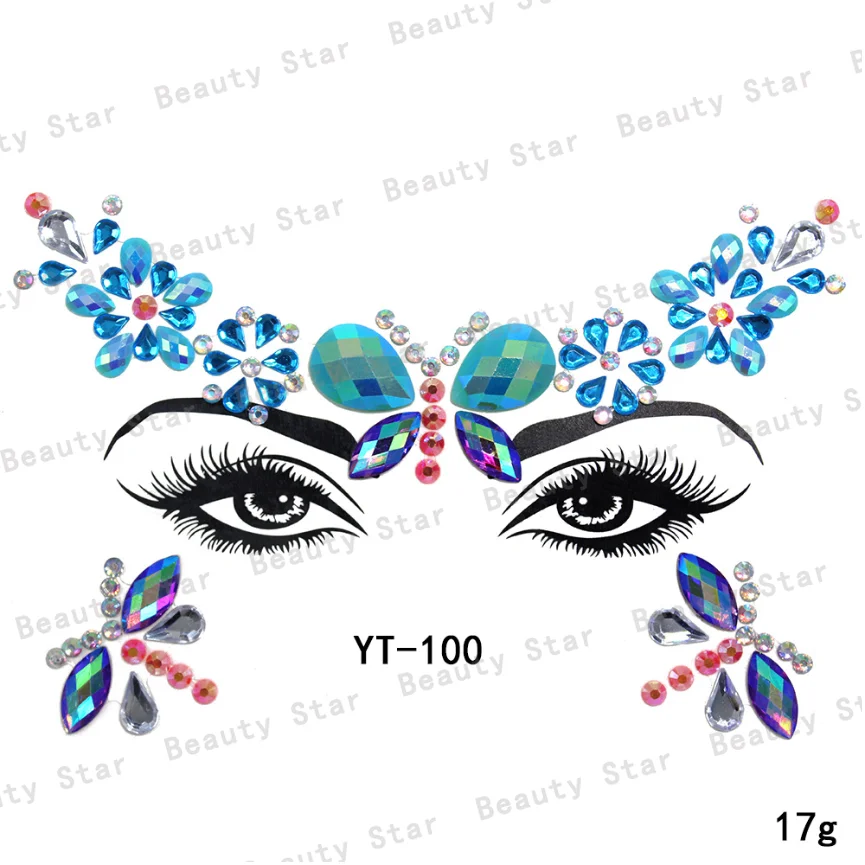 3D Sexy Face Tattoo Stickers Temporary Tattoos Glitter Fake Tattoo Rhinestones For Woman Party Face Jewels Tatoo