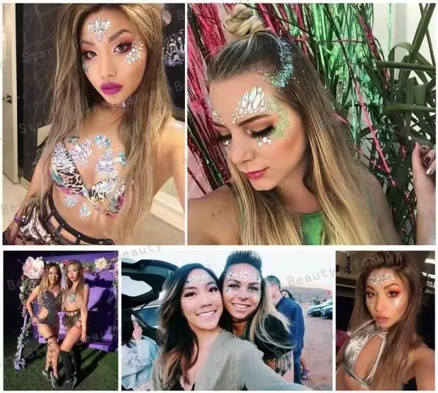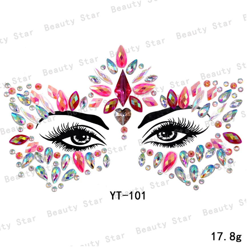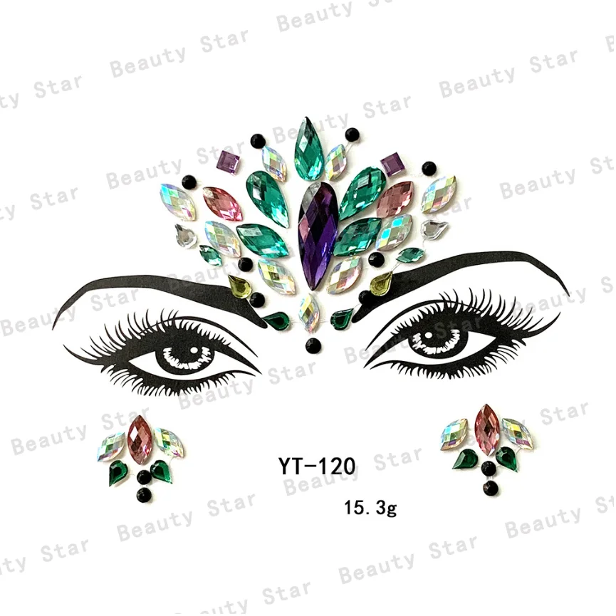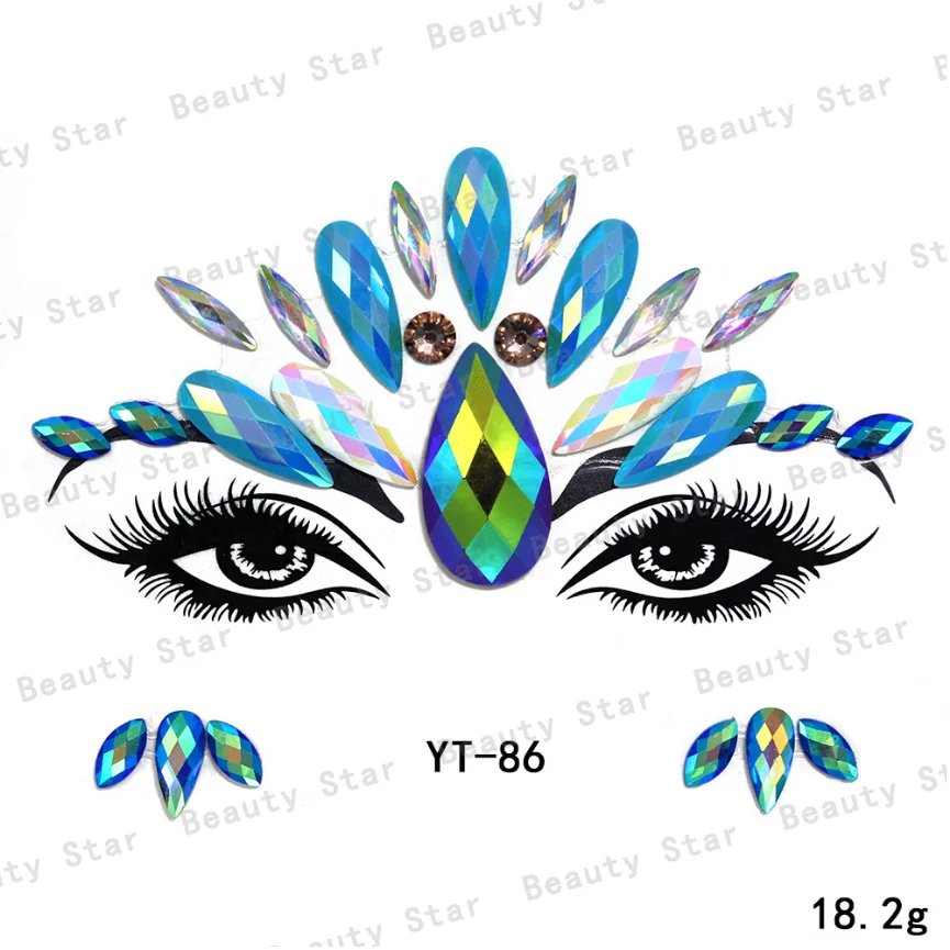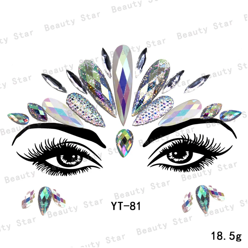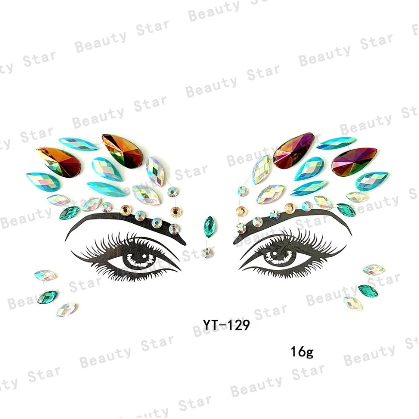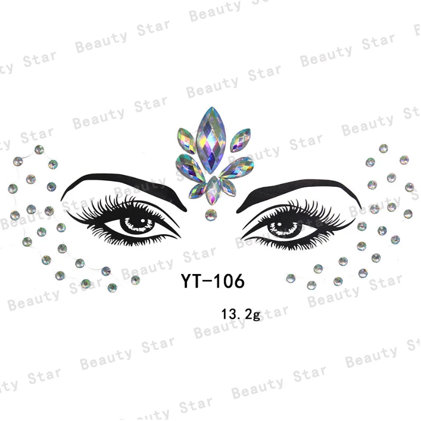 3D Sexy Face Tattoo Stickers Temporary Tattoos Glitter Fake Tattoo Rhinestones For Woman Party Face Jewels Tatoo