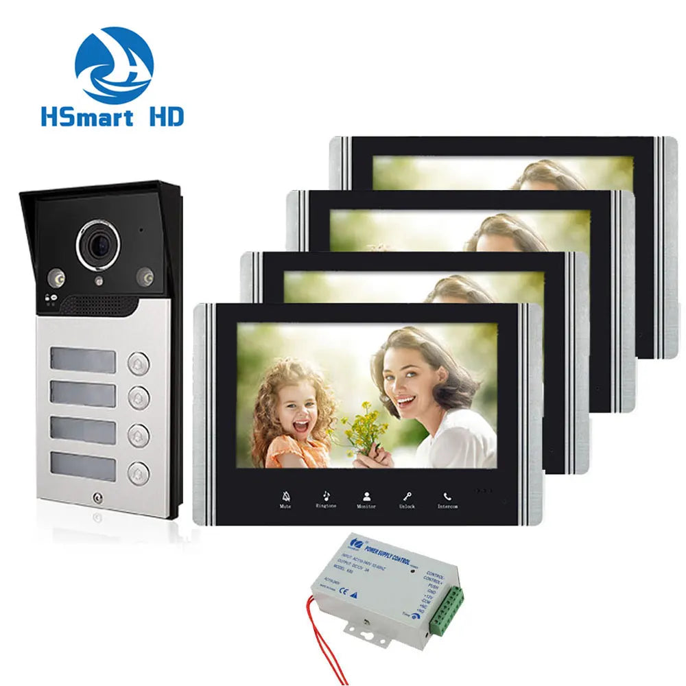 4 wire 7 inch Apartment Building Video Intercom Video Door Bell Camera with 2/3/4 Buttons for Family HD Video Door Phone System