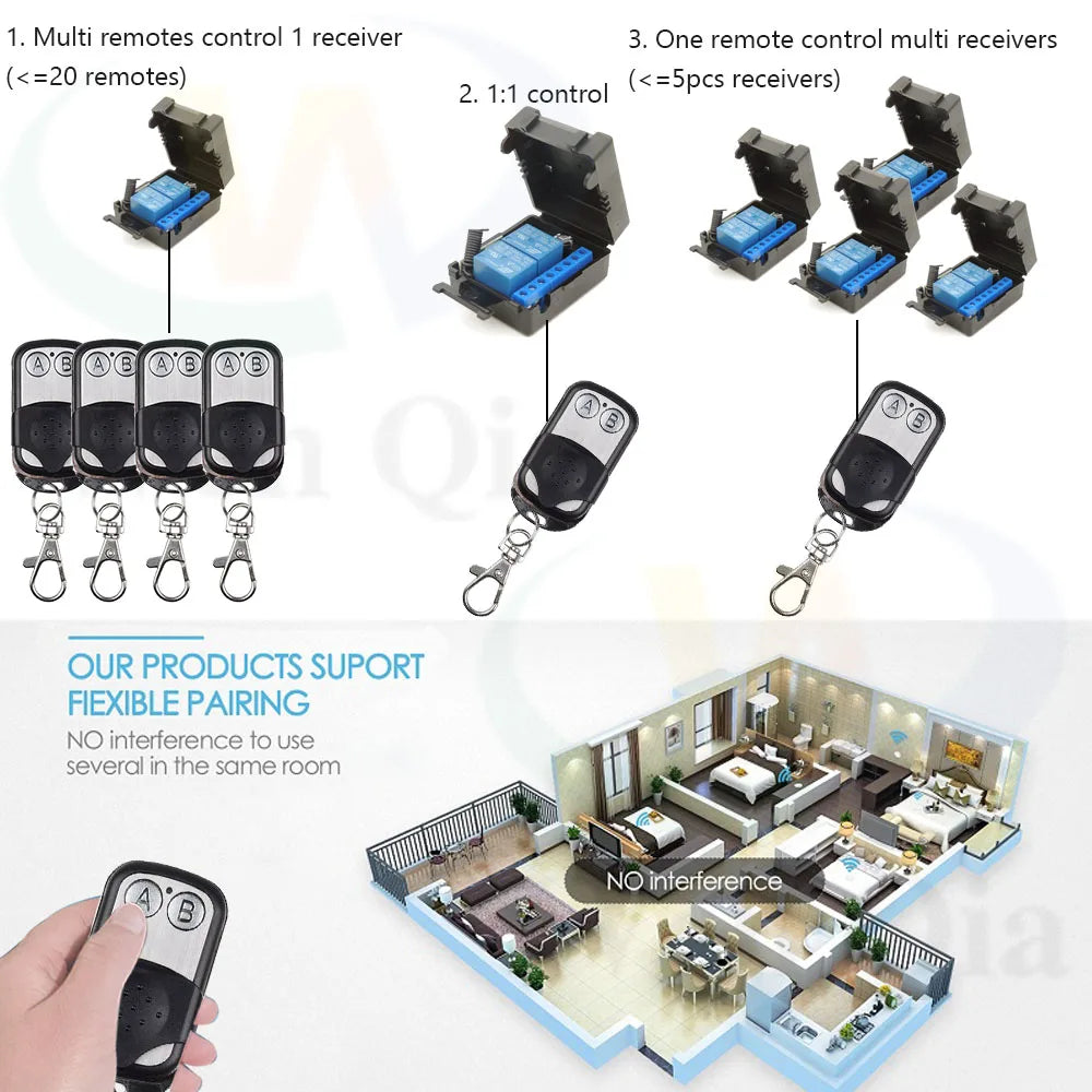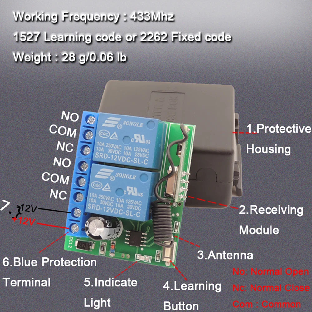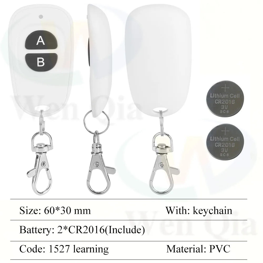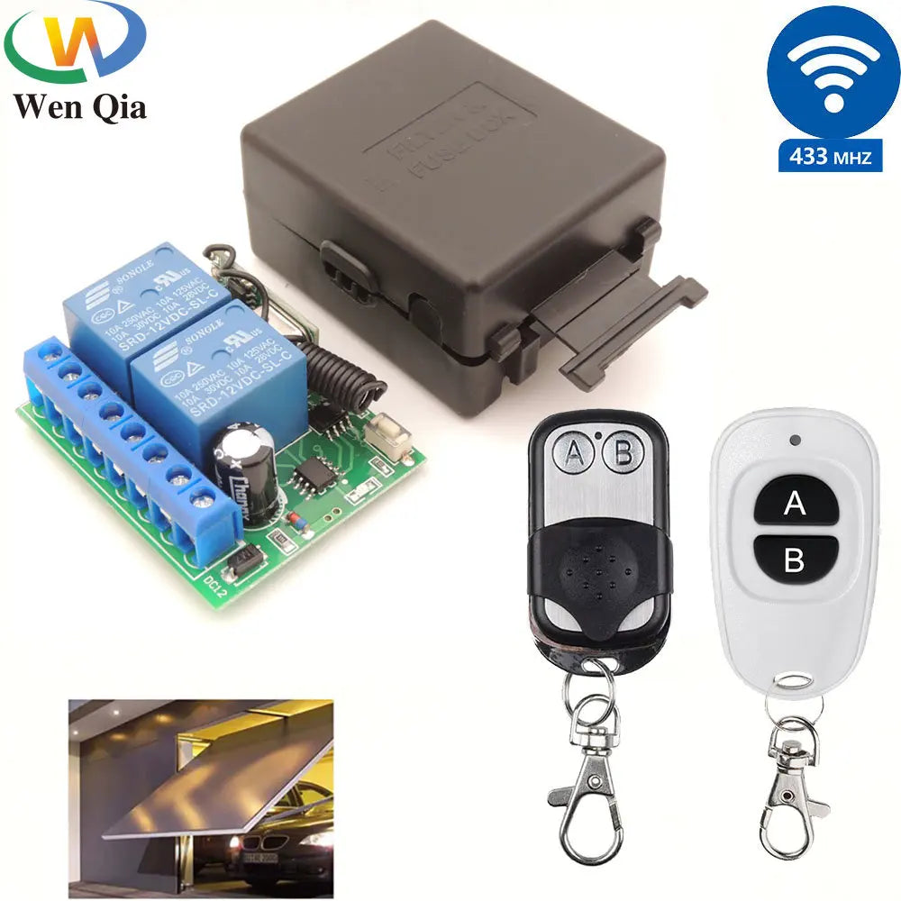 433MHz 12V Wireless Garage Door/Motor/Car/Light Remote Controller Switch 10A 2CH Relay Receiver Module with Keyfob Transmitter