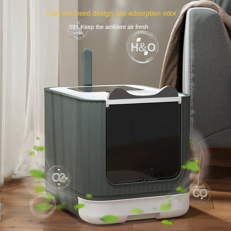 44.5CM X 37.5CM Cat Litter Basin Oversized Splash-Proof Fully Enclosed Cat Toilet Sterilization Deodorant Drawer Cat Litter Basin Pets Cleaning Supplies