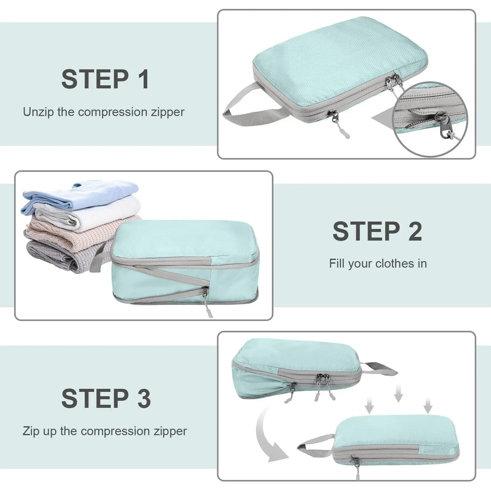 4Pcs Travel Compression Packing Cubes Bag Portable Suitcase Clothes Organizers Waterproof Luggage Storage Cases Drawer Bags