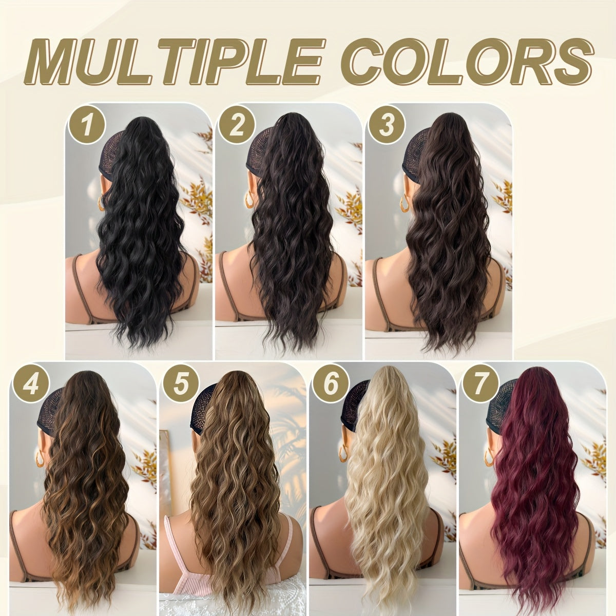50.8cm 20-Inch Claw Ponytail Extension with a Short Water Wave Design, Made from Heat-Resistant Synthetic Fibers, Perfect for Women's Everyday Hair Additions
