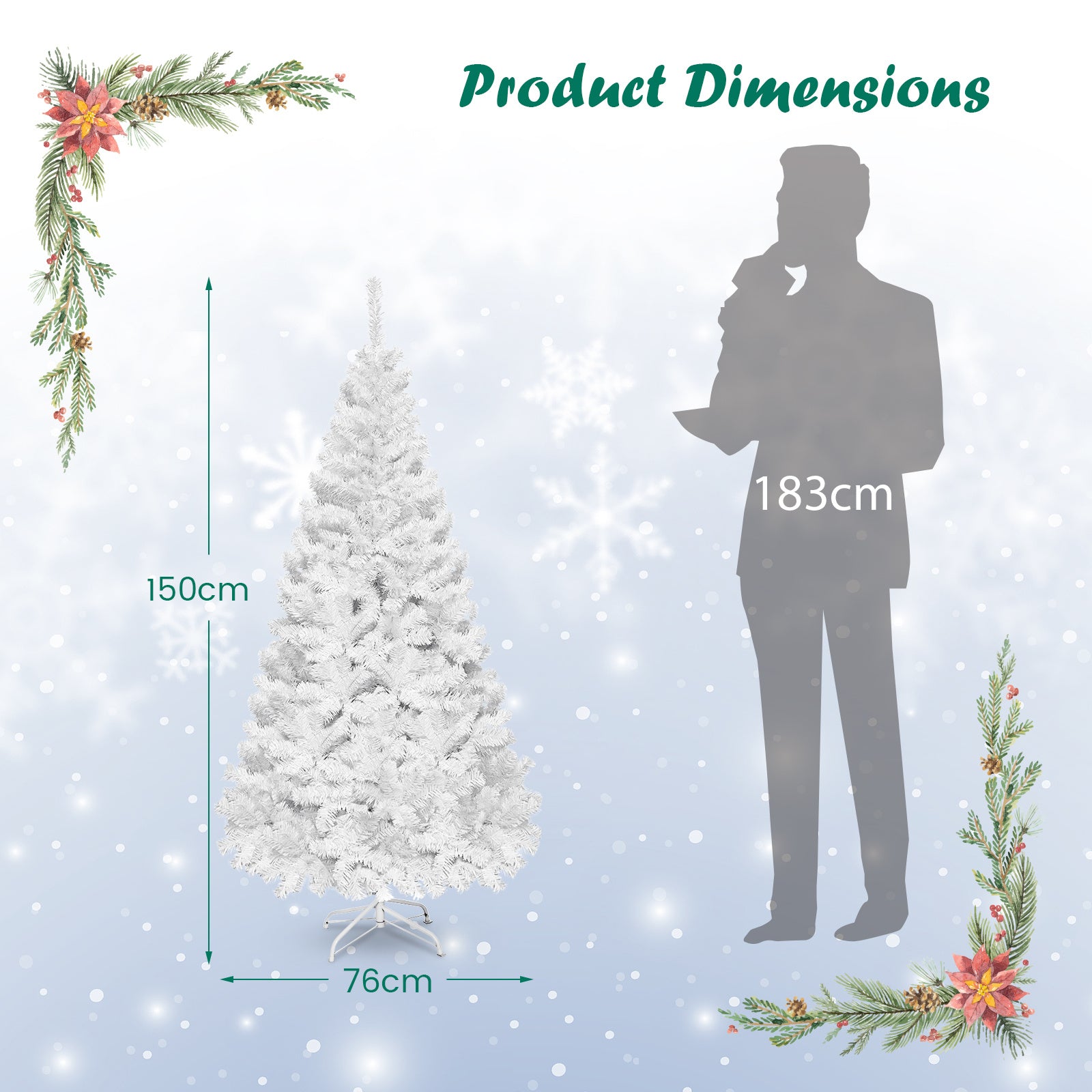 5FT Christmas Tree, Artificial Xmas Decoration Tree with 350 PVC Branch Tips & Metal Stand, Dreamy Holiday Festive Celebration Tree for Home, Office & Shop, Quick Setup, White