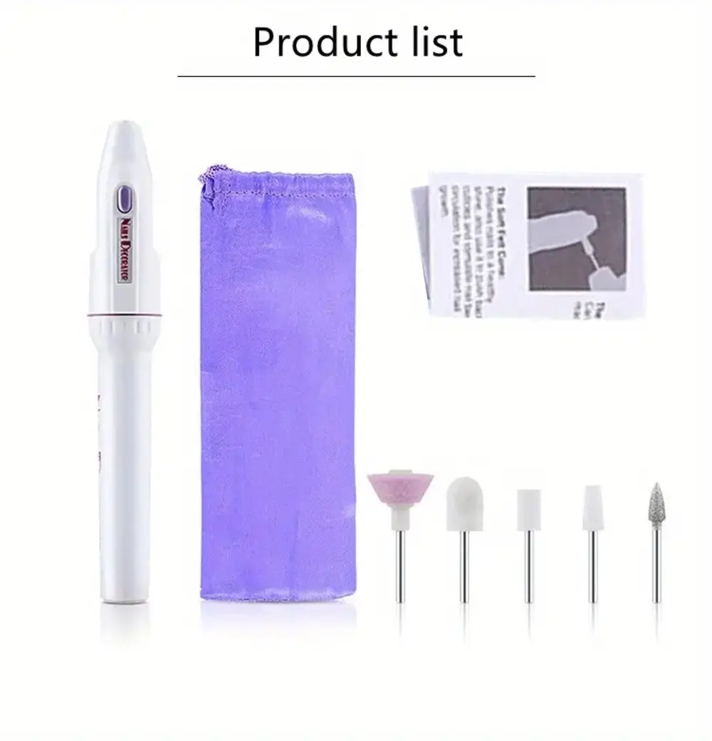 5in1 Electric Nail File Set Portable For Acrylic Nails Fake Nail Tips Cuticle Trimmer Nipper Cutter Cuticle Pusher Manicure Tool