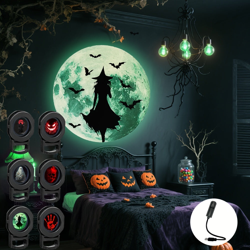 6 Patterns Lights Halloween LED Projection Light, Yard, Festival, Camping, Party USB Light, Ground Pattern Atmosphere Light, USB Powered Energy-Saving Portable with Multiple Patterns: Witch, Grim Reaper, Ghost, Skull, Horror