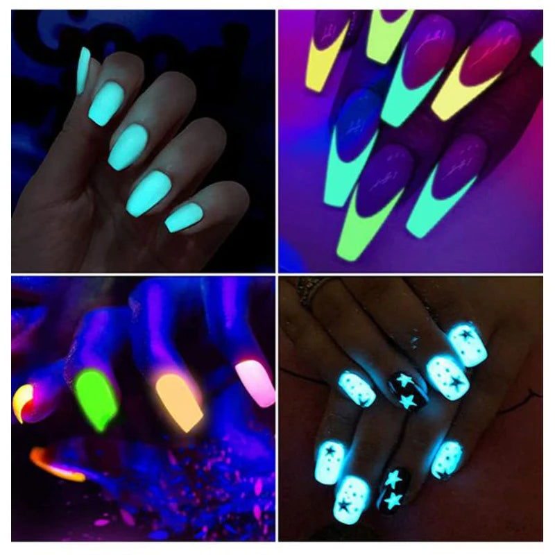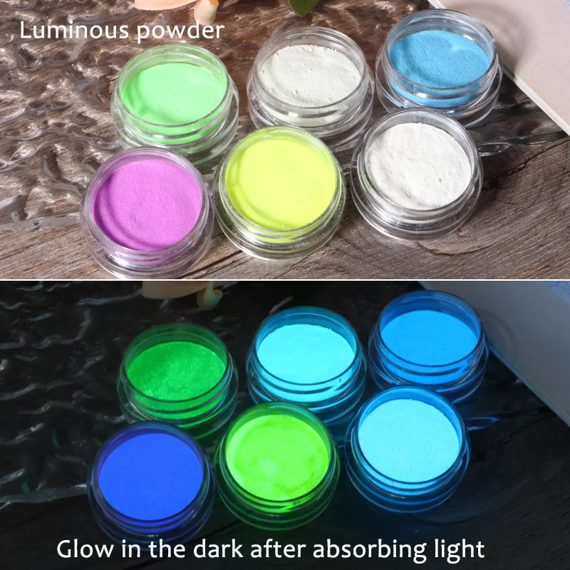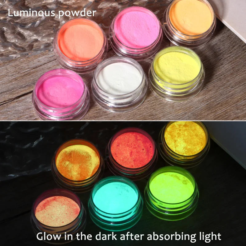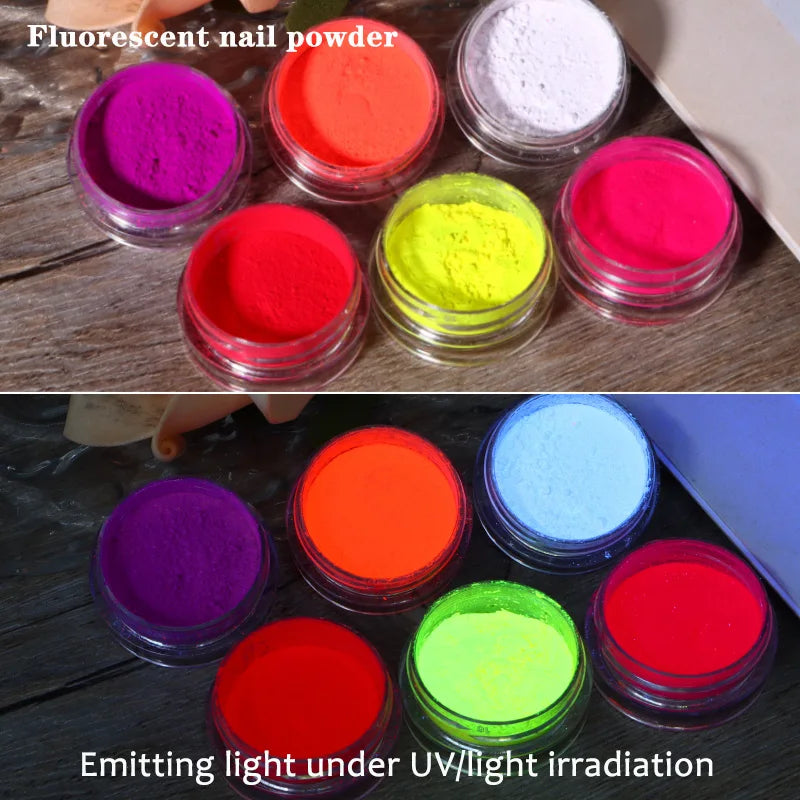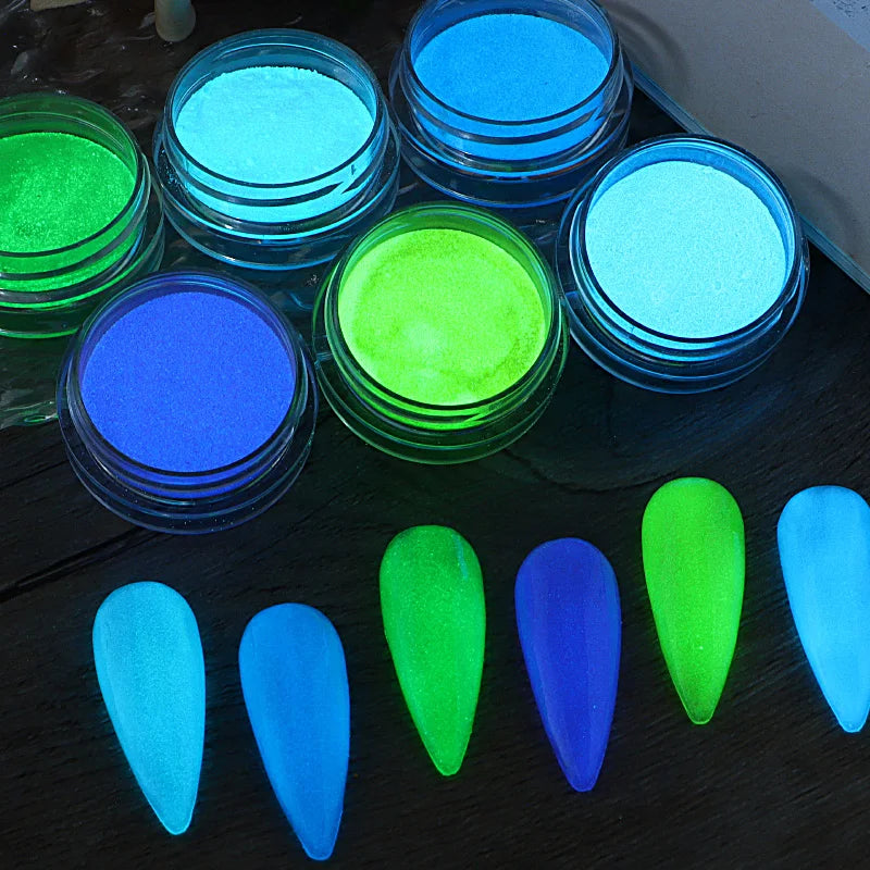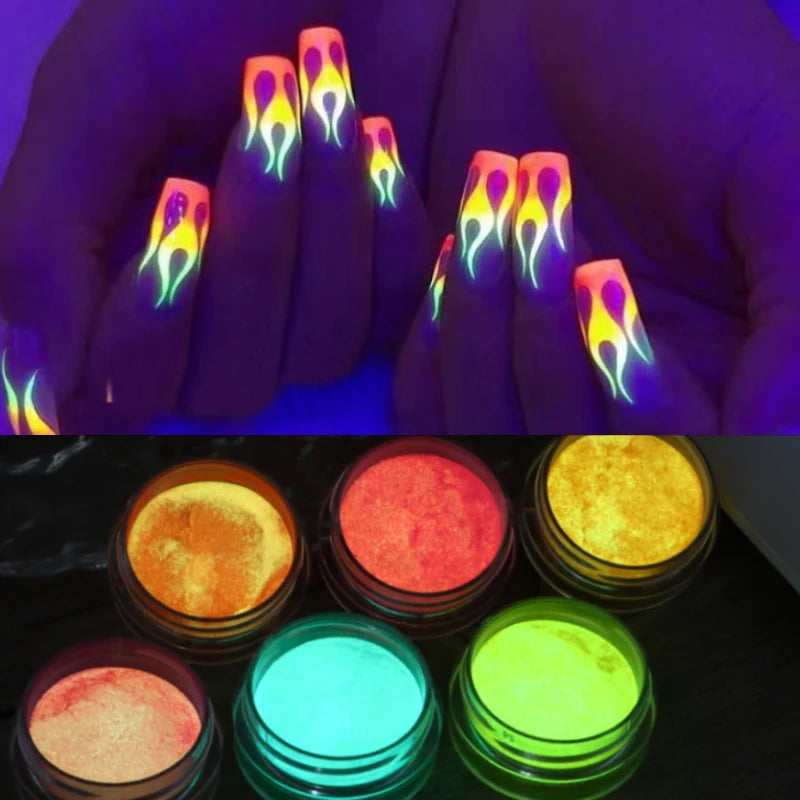 6PCS/SET Luminous Nail Glitter Powder Glow In The Dark Green Orange Neon Pigment Dust Fluorescence Luminescent Manicure Decor