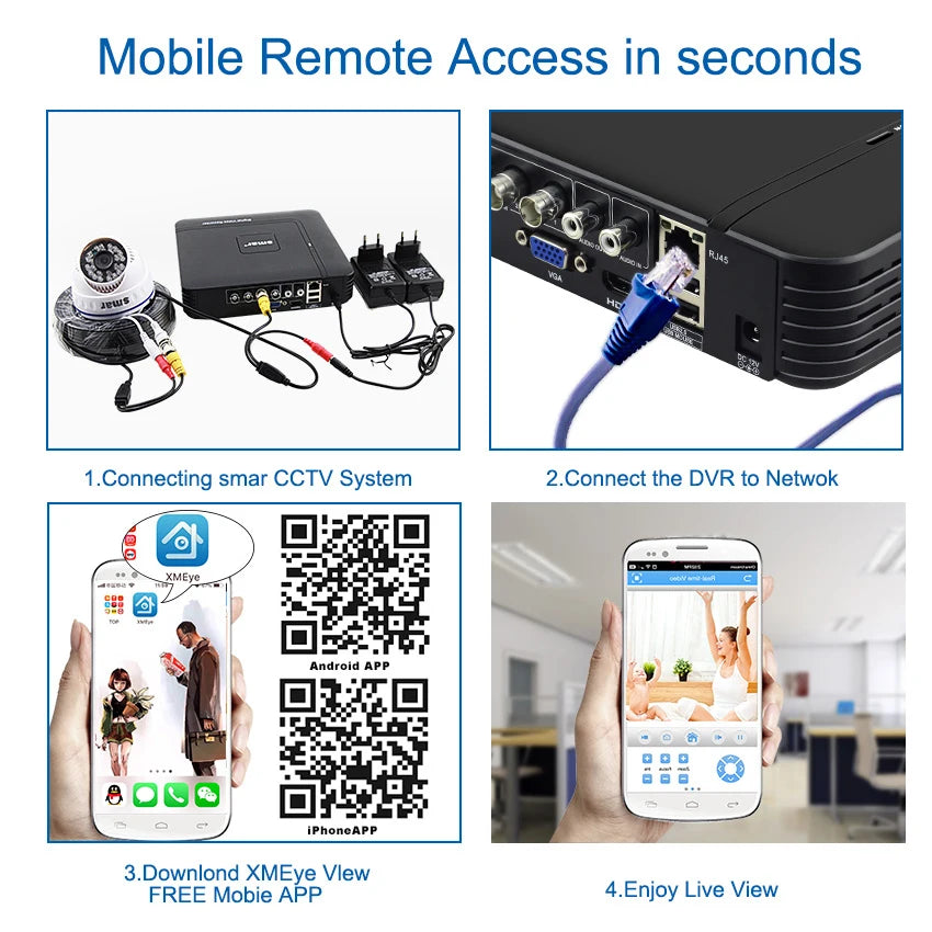 720P 1080P Video Surveillance System 4CH H.264 CCTV HDMI DVR Security Kit Indoor Home Security Camera Day&Night Detect