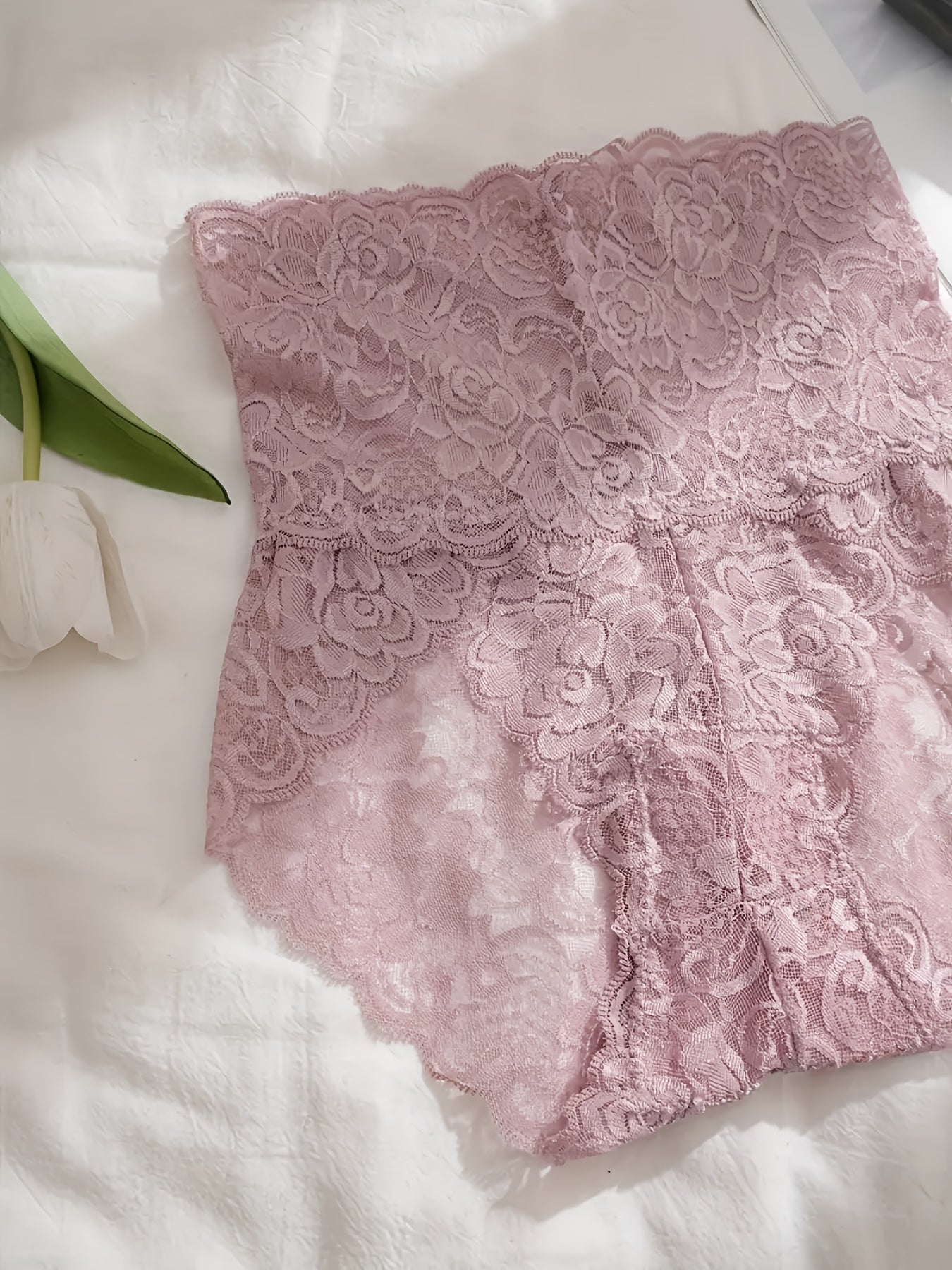 7pcs Set Women's High-Waisted Lace Underwear - Floral Print Bikini Briefs with Multi-Color Options (Black, Navy, Red, Pink, Beige,, Purple) - Full Coverage Opaque Triangle Panties, Hand Washable Lace Trim & High for