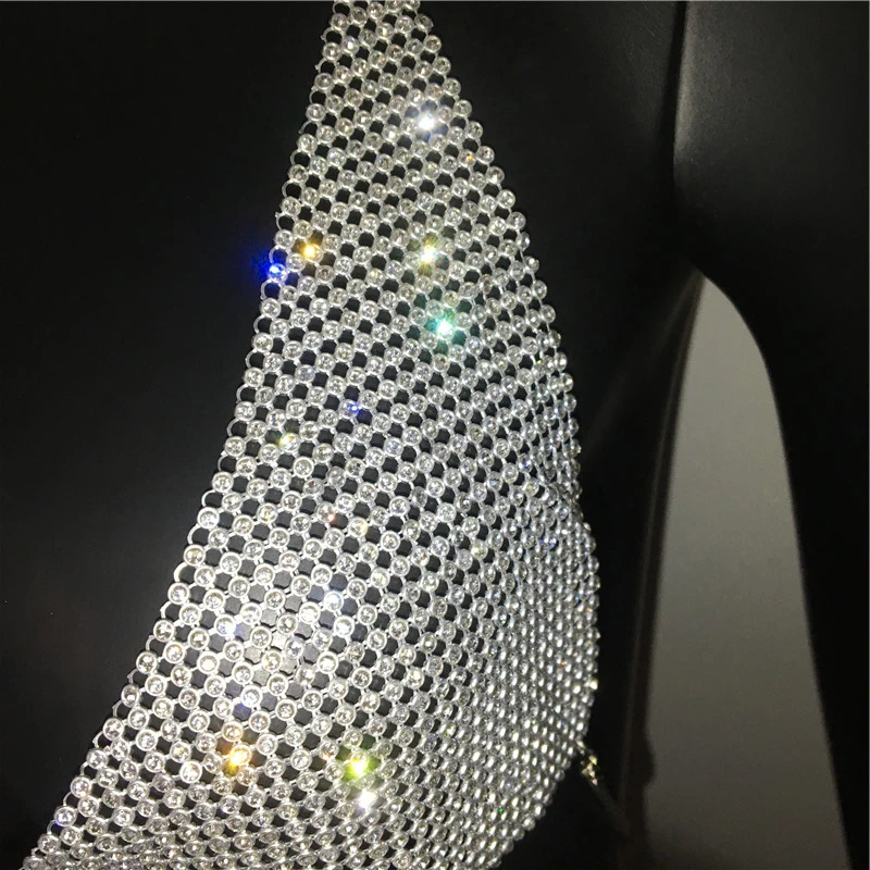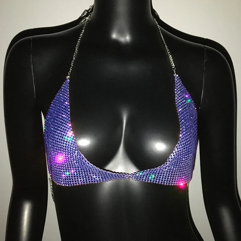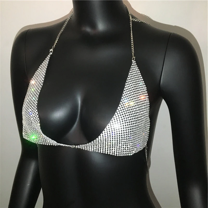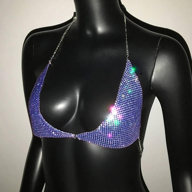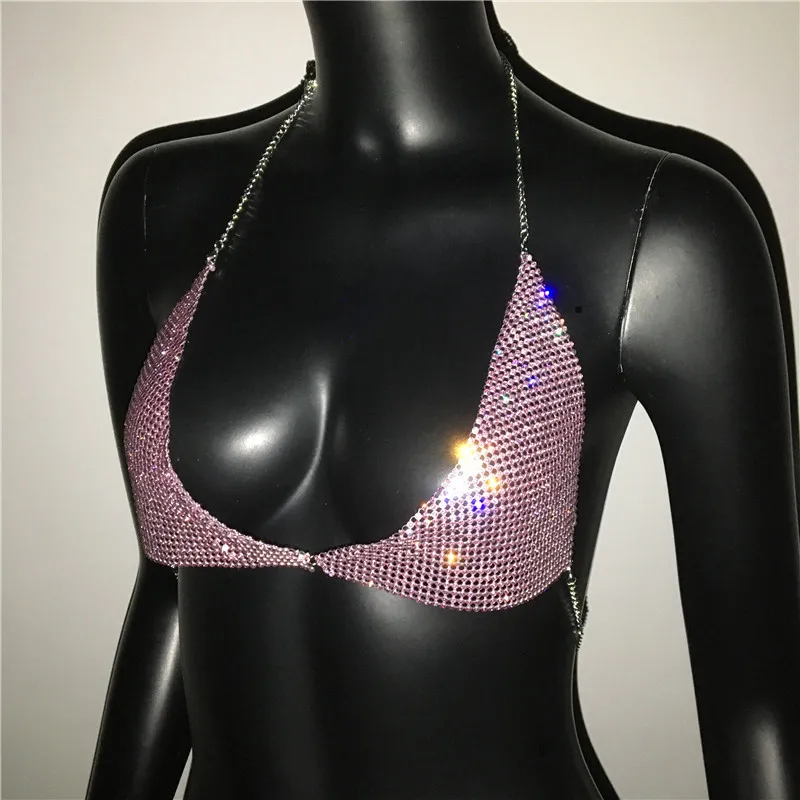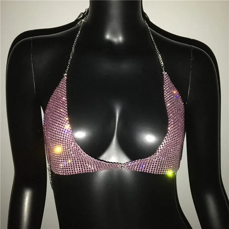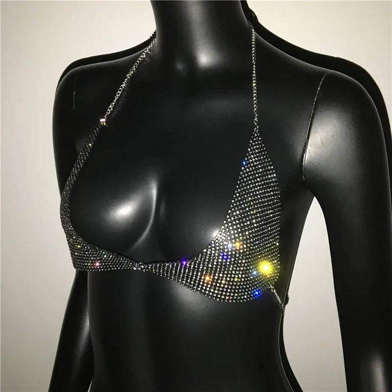AKYZO Women Halter Handmade Rhinestones Bling Tank Tops Shiny Beach Bralette Party Club Gold Metal Diamond-Studded Camis