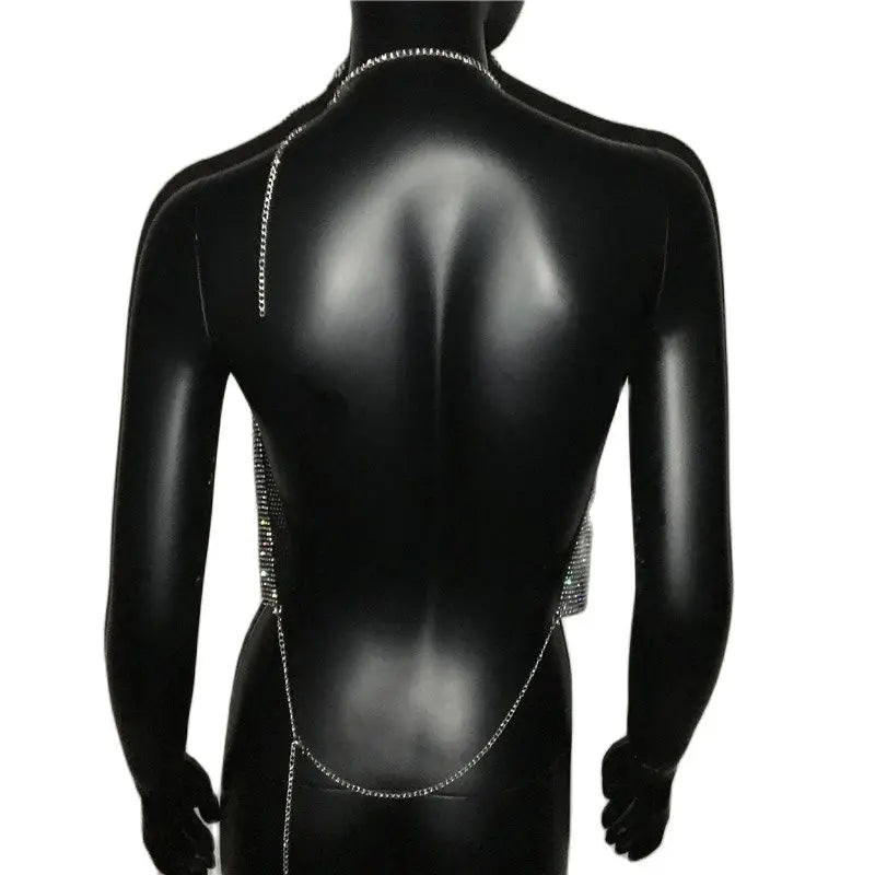 AKYZO Sexy Halter Handmade Shiny Rhinestones Crop Top Women Backless Summer Beach Chic Party Bralette Cropped Tank Top