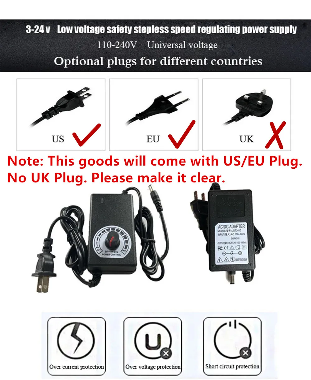 Note 2: This goods will come with US/EU Plug. No UK Plug. Please make it clear.