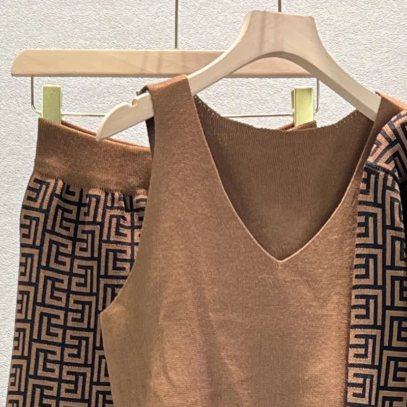 Autumn Winter Panelled Knitted Sets Fashion Long Sleeve V Neck Tie Knitwear+Wide Leg Pant+ Women OL Sweater Three Pieces Suits