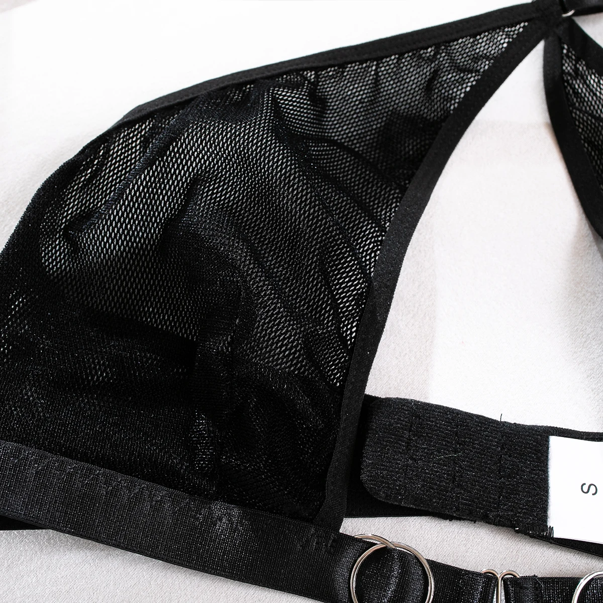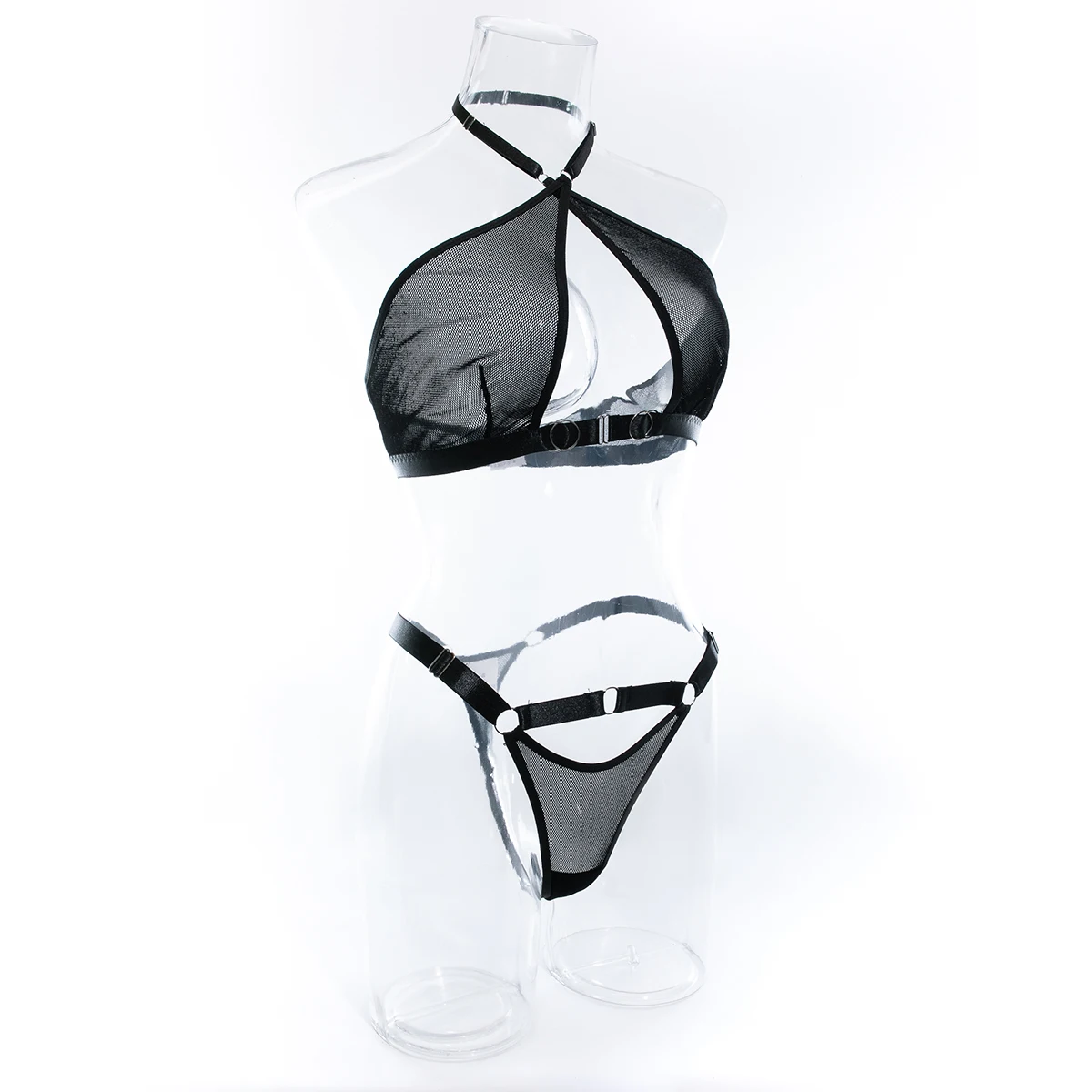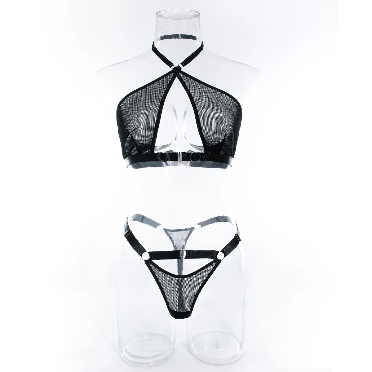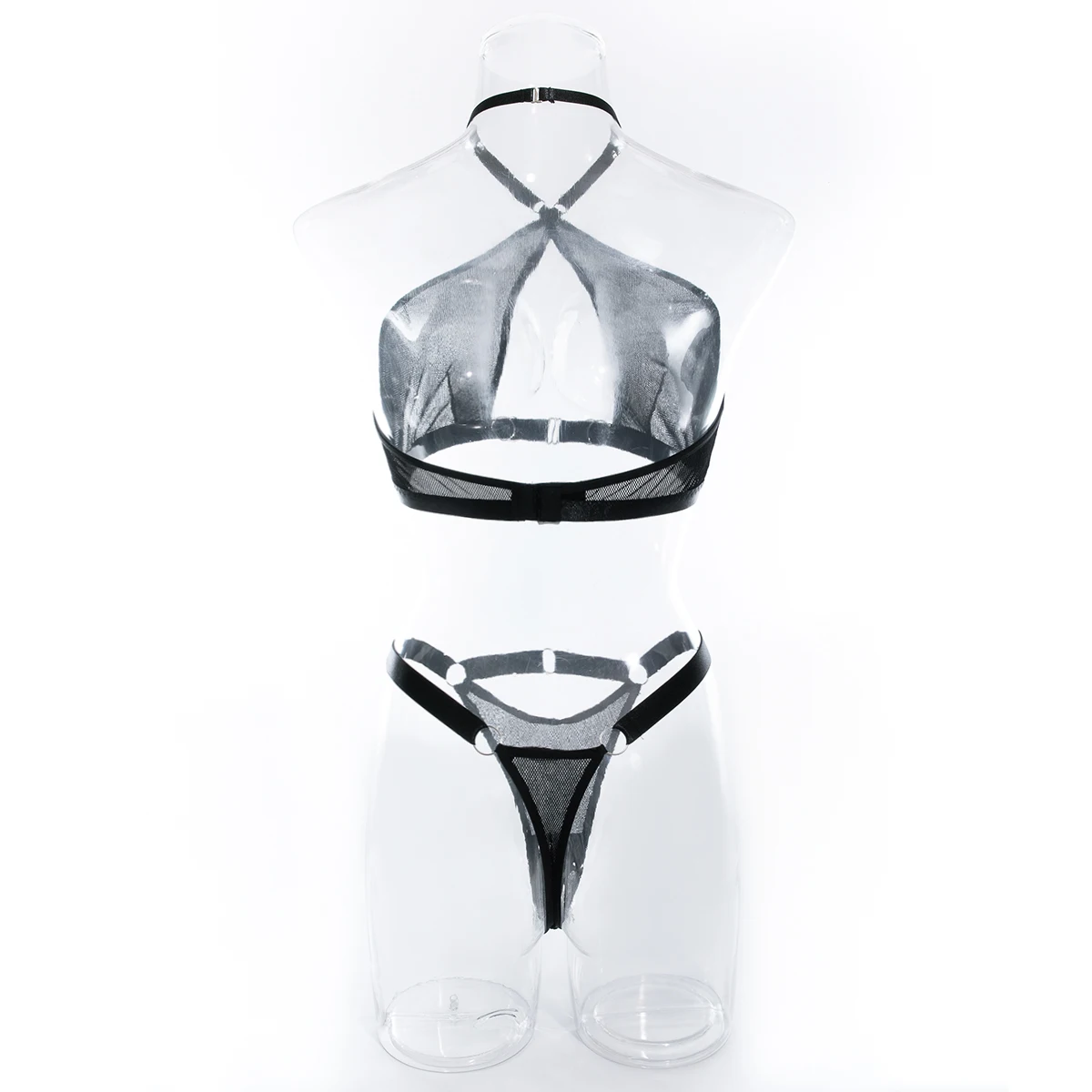 Backless Halter Cut Out Open Chest Erotic Black Wireless Brief Lingerie Kit Intimate Soft Material Transparent Fairy Outfit