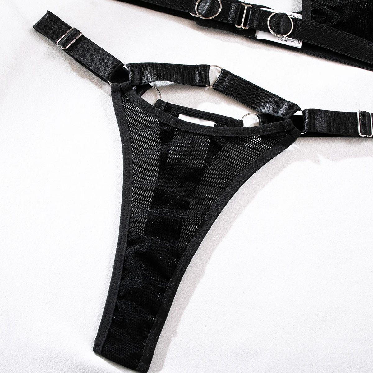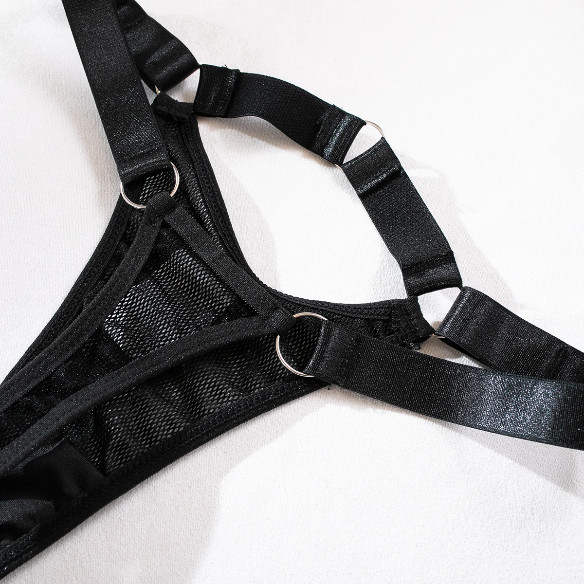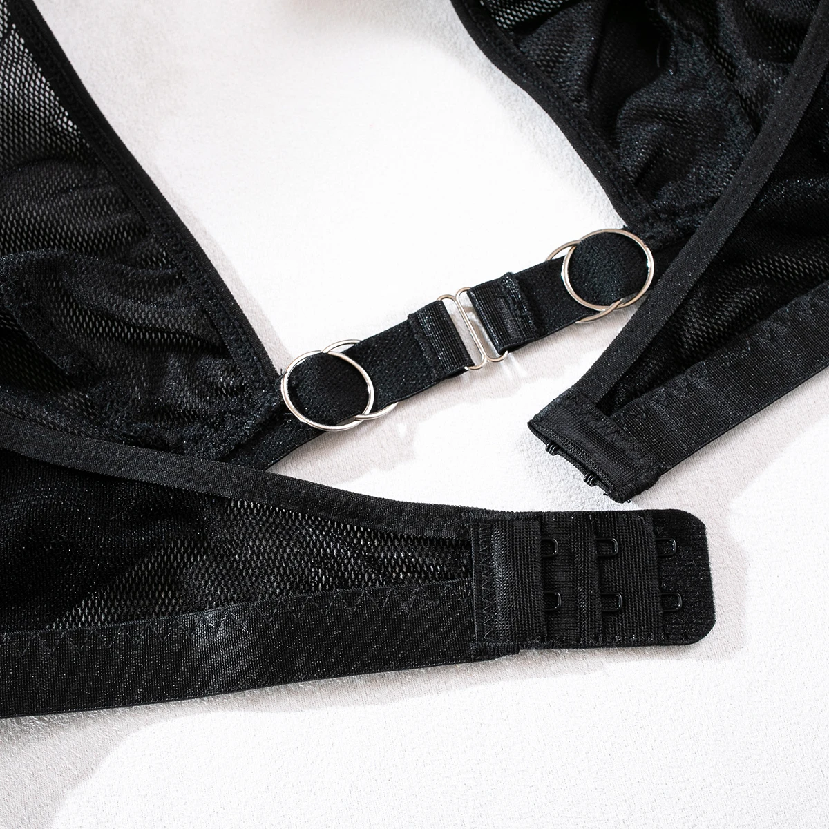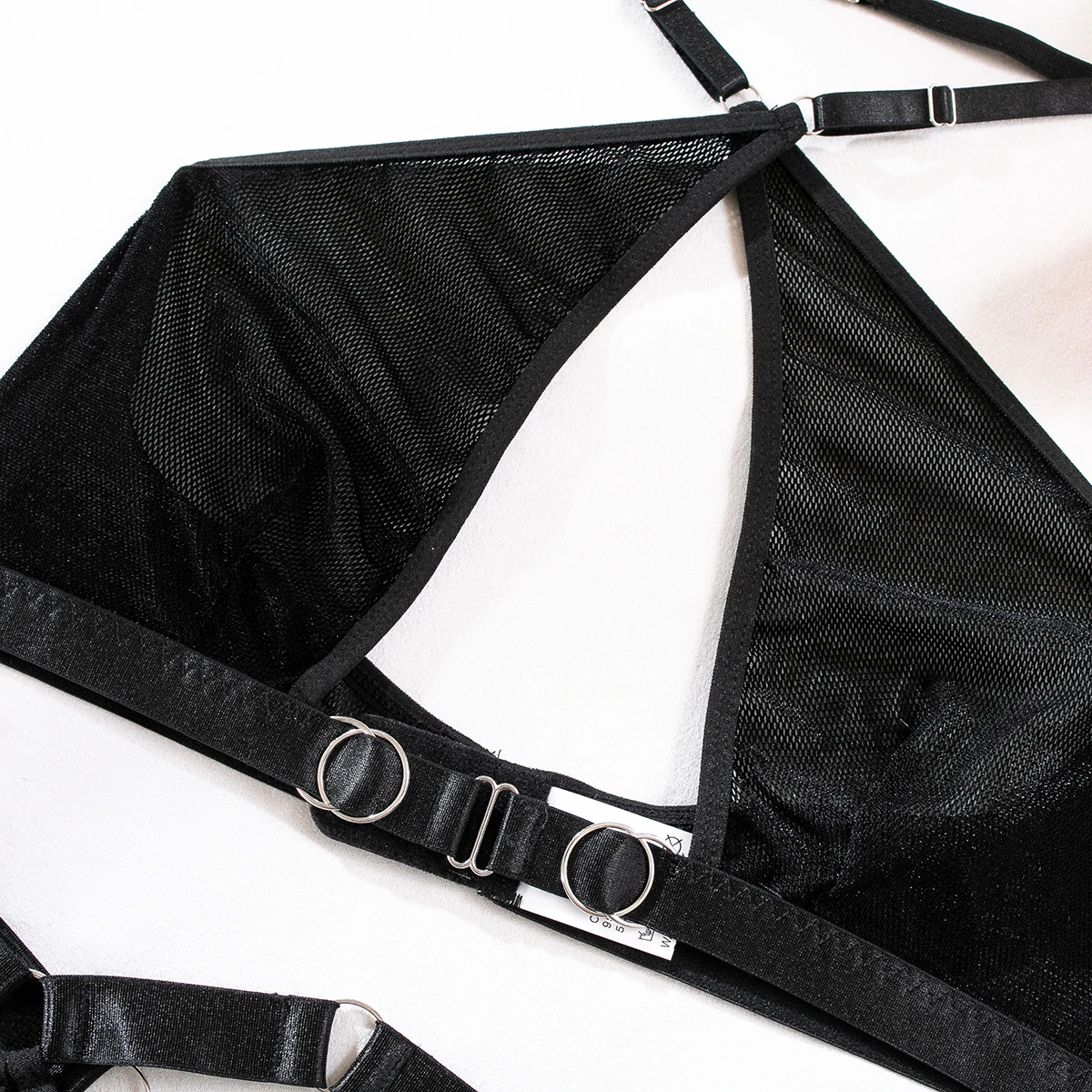 Backless Halter Cut Out Open Chest Erotic Black Wireless Brief Lingerie Kit Intimate Soft Material Transparent Fairy Outfit