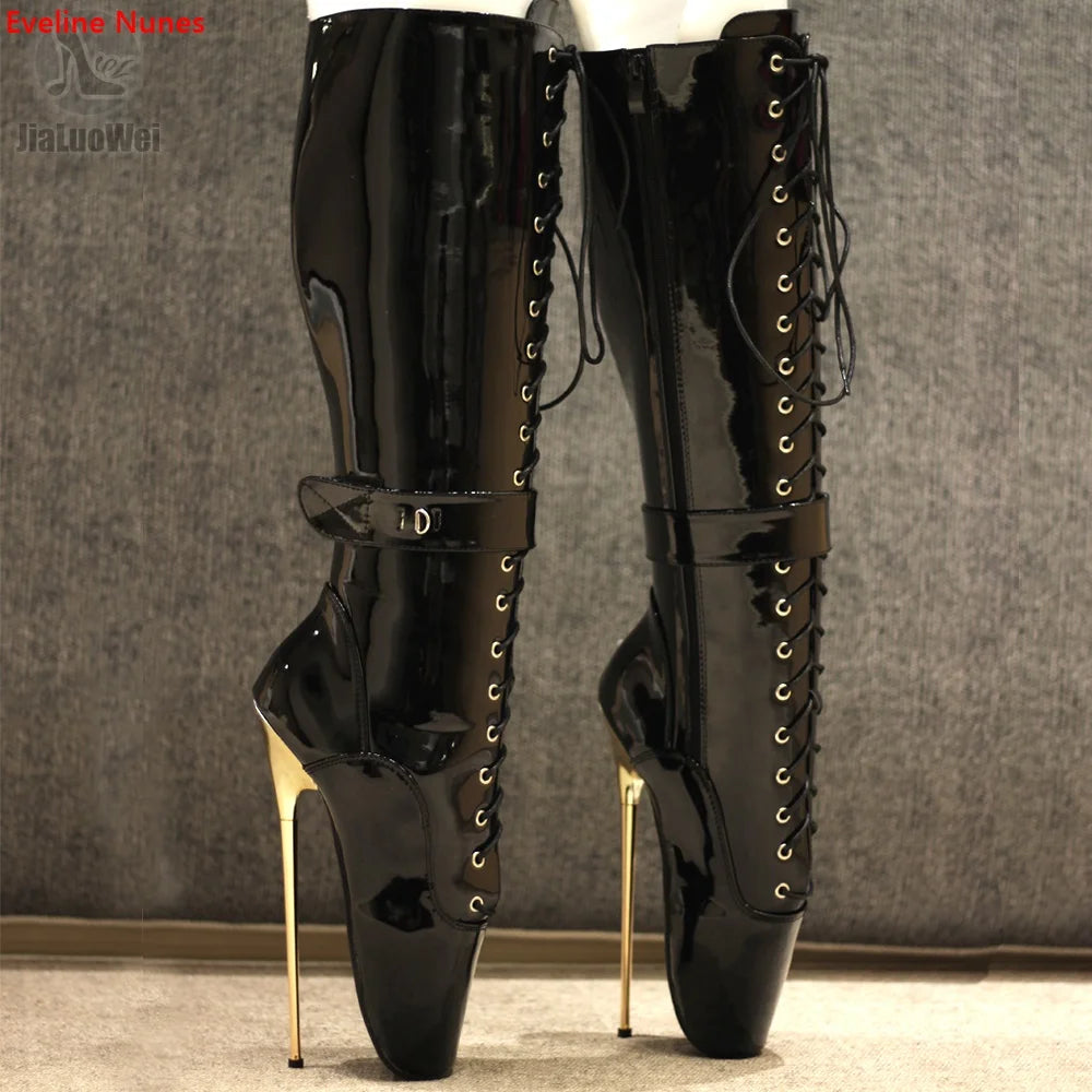 Ballet Lace Up Mid Boots New Arrival Women's Solid Summer Round Toe Super Metal Thin Heel 20CM Fashion Sexy Black Shoes