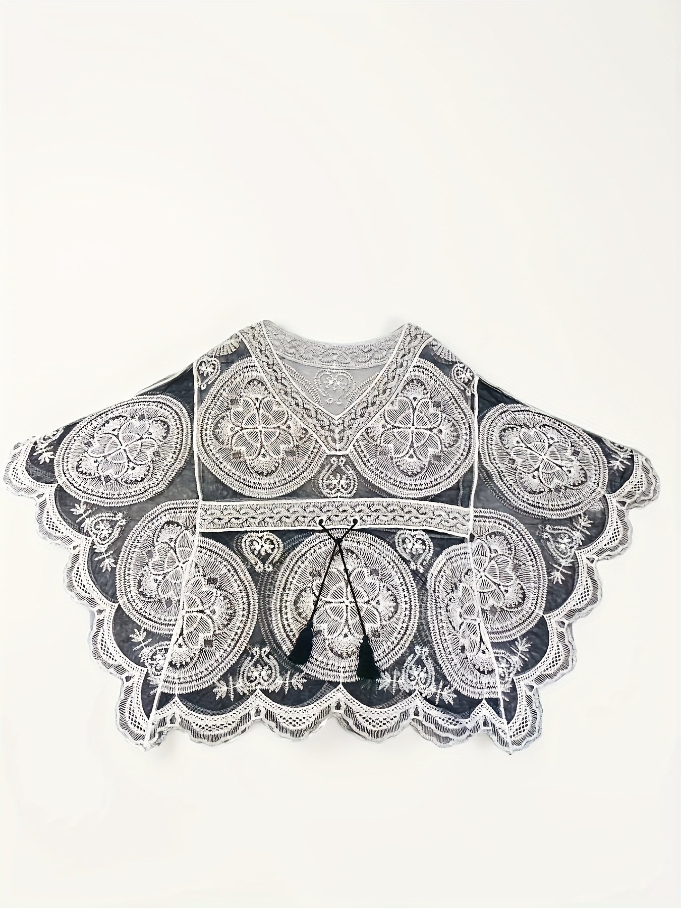 Boho Chic Floral Embroidered Swimsuit Cover-Up - V-Neck, Sheer Mesh Beach Cover-Up with Batwing Sleeves & Tassel Detail, Lightweight for Women, Perfect for Summer Vacations, Beach Coverup|Boho Chic Style|Stretchy Fabric