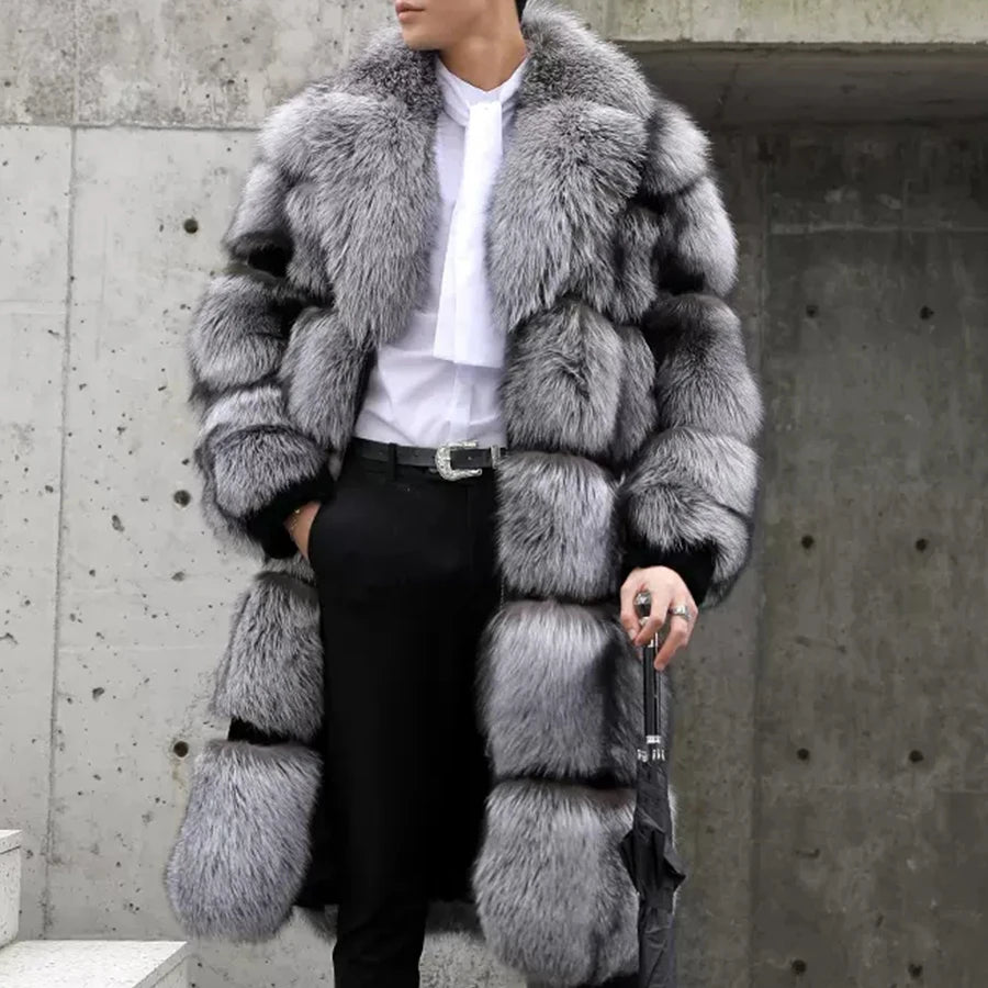 Brand New M-4XL Italian Style 100% MEN Natural Real Sliver Fox Mink Fur Winter Warm Snow Clothes Supplies Male Coat Jacket Long Overcoat European High Quality Outerwear Coats Gifts for Husband Boyfriend Lover Men Luxury Fash