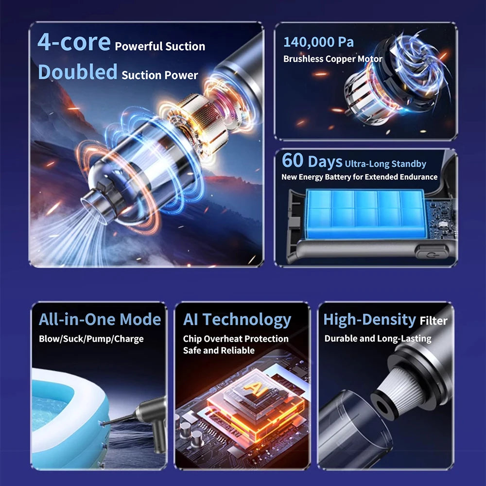 Car Vacuum Cleaner 140000PA Dual-Purpose Strong Suction Accessoire Voiture Wireless Handheld Mini Blower for Home Appliance