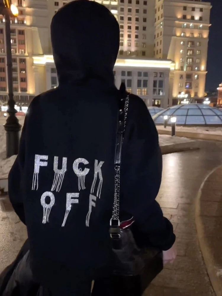 Chain Tassel Oversized Hooded Sweatshirts Goth Punk Streetwear Rhinestones Letter Loose Hoodie Women 2023 Fashion Diamond