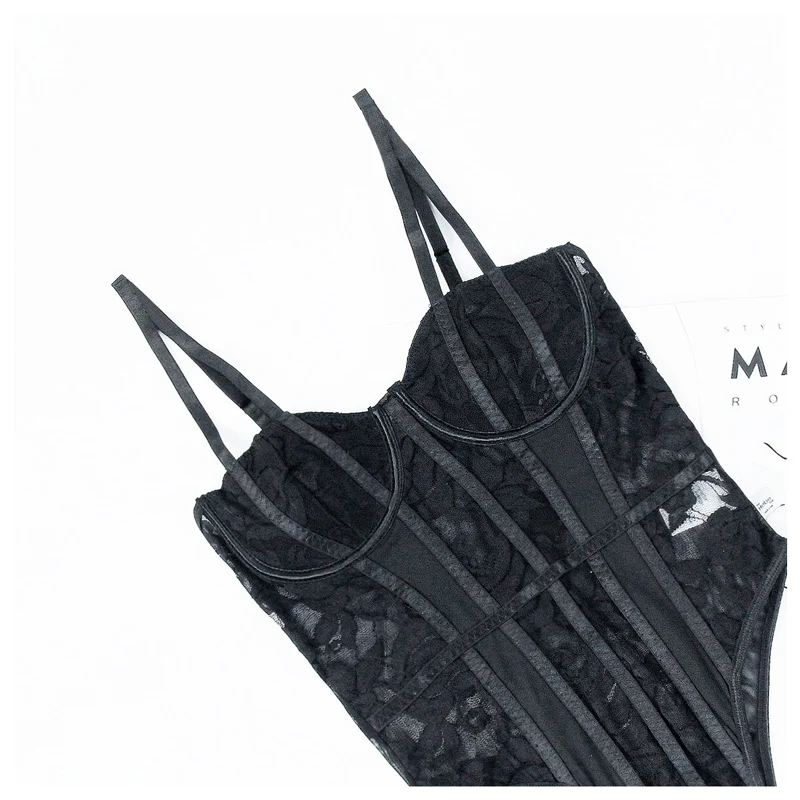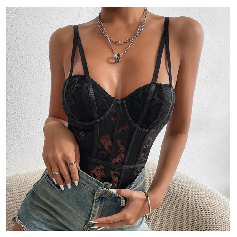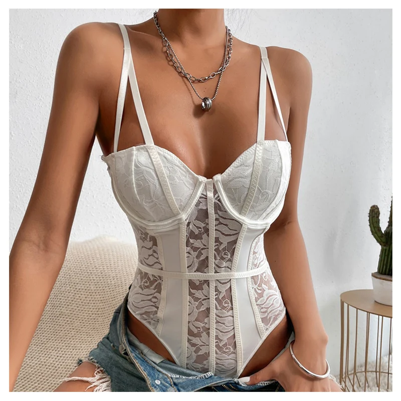 CINOON Ladies Sexy Lace Corset Hot Embroidered Bodysuit Lingerie Elasticity Push up Underwear Women Mesh Material Bustier