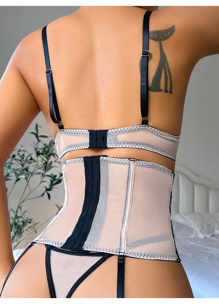 CINOON New Sexy Corset Lingerie Women Mesh Breathable Shaping Bodysuit Ladies G-string Fishbone Body Suitier Underwear