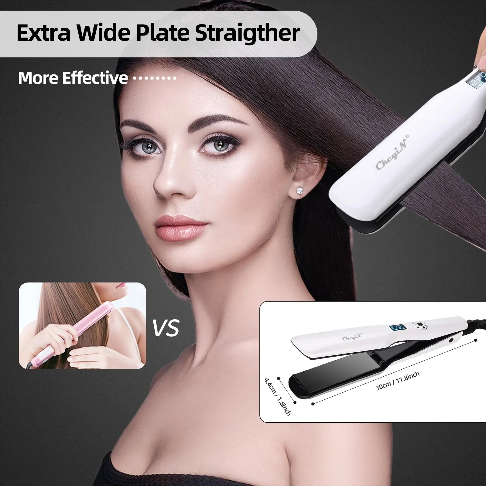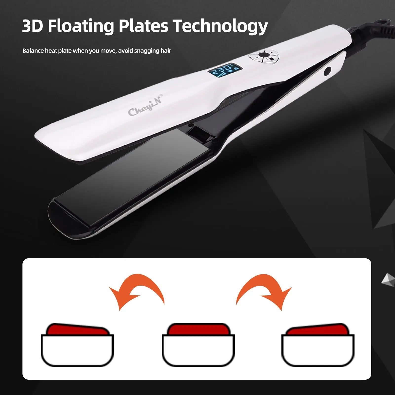 CkeyiN 44mm Tourmaline Ceramic Hair Straightener LCD Display Fast Heating Flat Iron Adjustable Temperature Straightening Iron