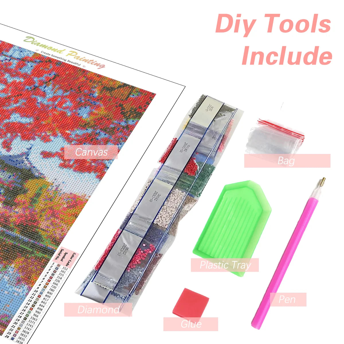 Diamond Painting: Plastic Plates; Glue;Pen;Pen Head
