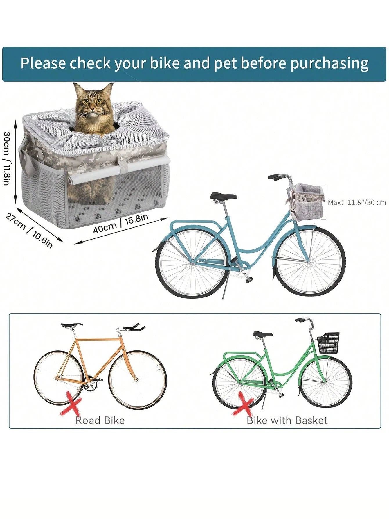 Dog Bike Basket, Small Medium Pets Dog Basket for with Breathable Mesh, Removable Bicycle Basket Front Handlebar Bicycle Basket