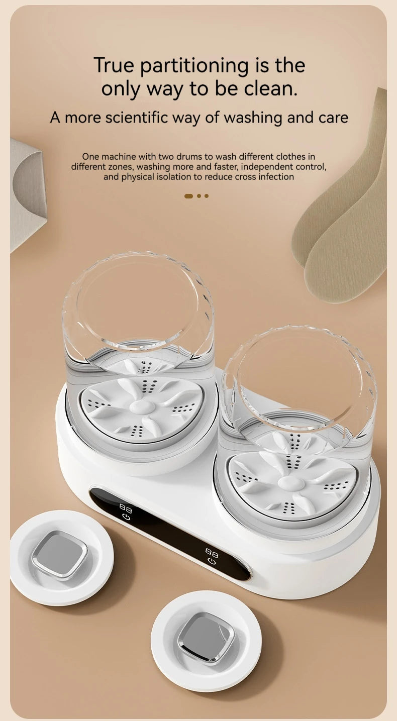 Double Cup Washing Machine for Underwear and Socks, Babies Clothes, Mini Laundry Cup, No Installation Needed, Small and Portable Home Indoor Outdoor Travel Camping Washing Machine