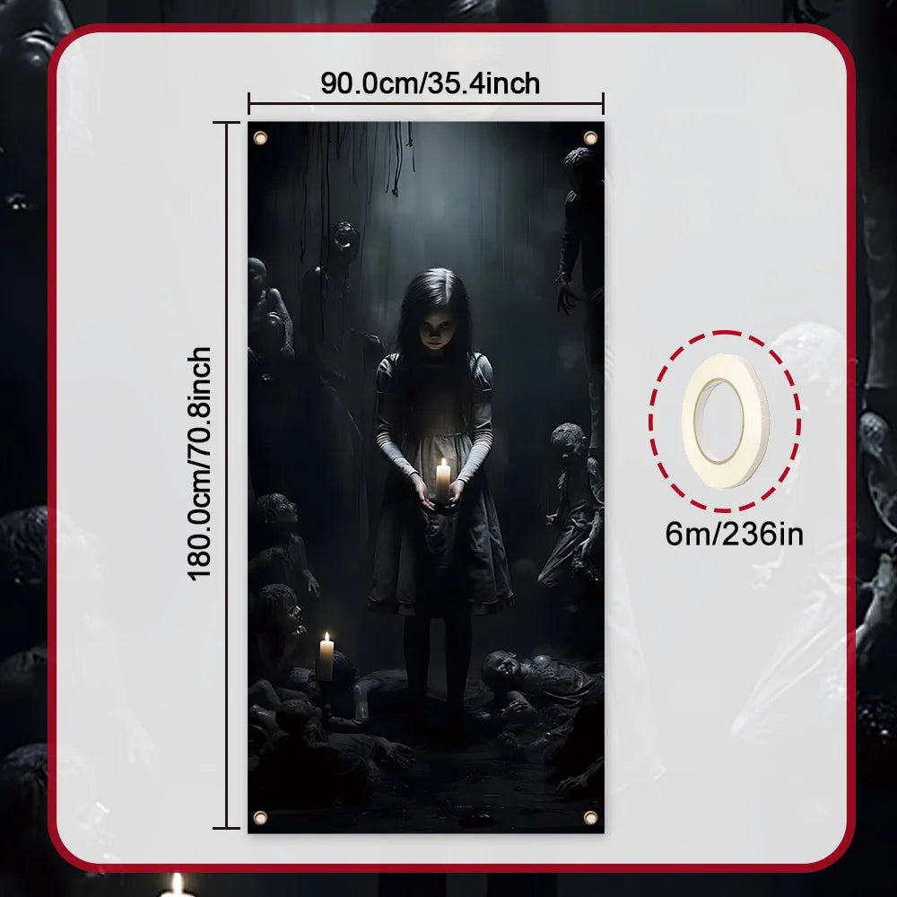 During Halloween to Celebrate the Holiday Season, Spooky Decorations - Spooky Halloween Banners with Ghosts and Candles Haunted House Decoration Supplies