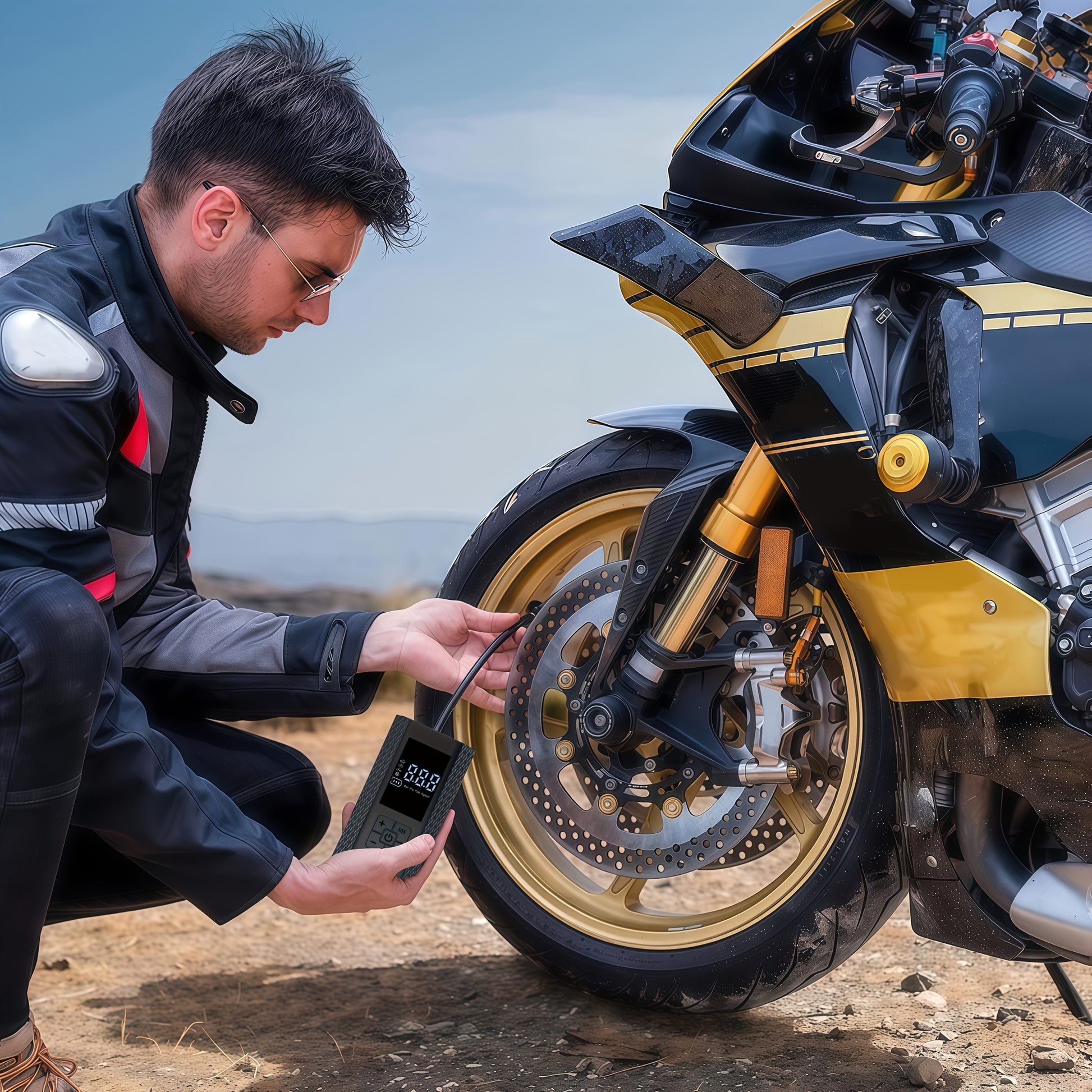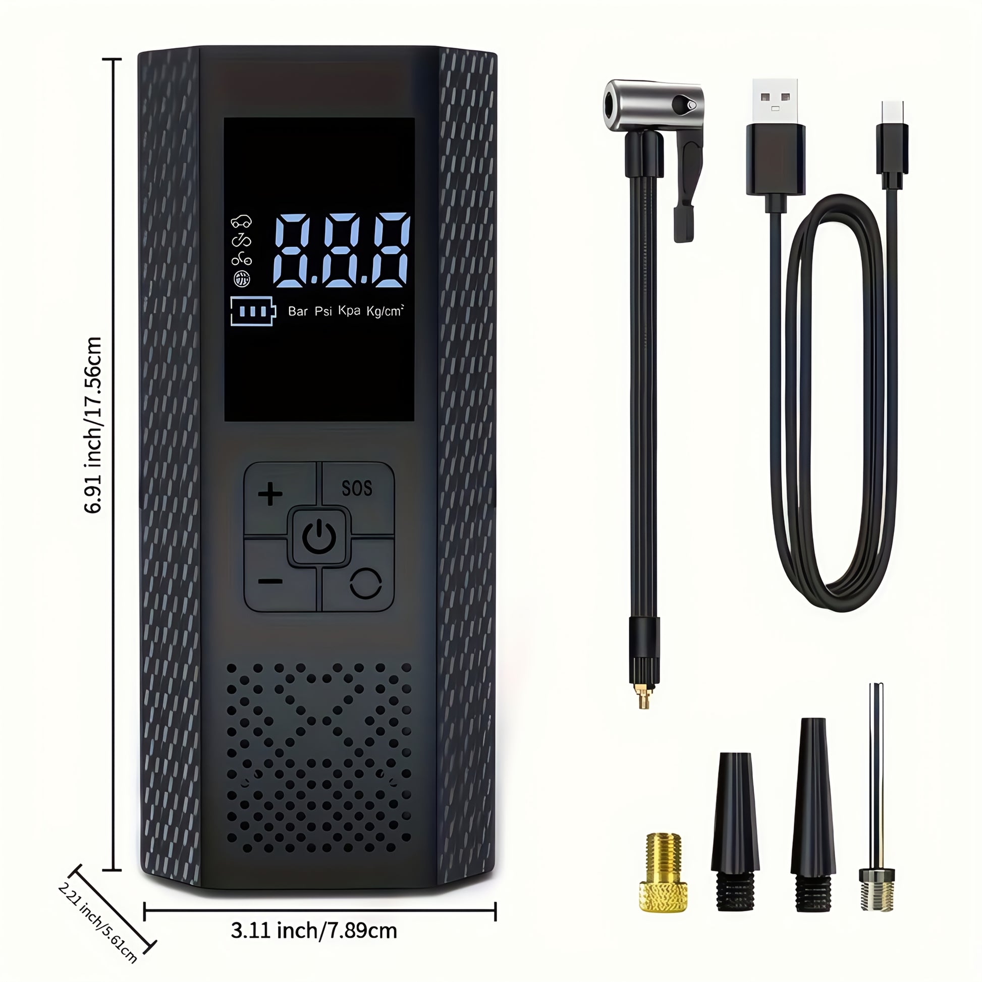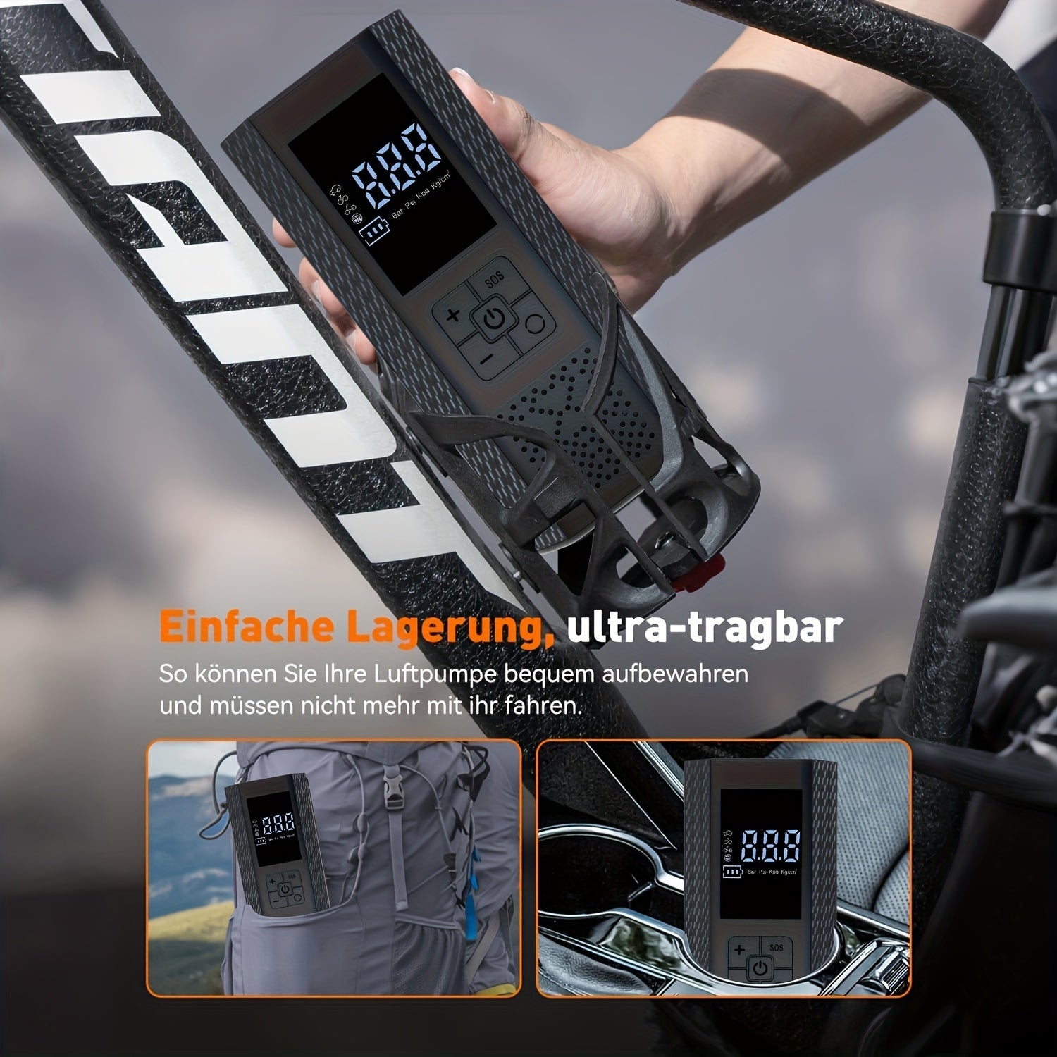 Electric Bicycle Pump with Digital LCD Pressure Gauge, 150 PSI High-Pressure Bike Air Pump, Rechargeable Portable Air Compressor, Automatic Inflation for E-Bikes, Motorcycles, Scooters, Smart Bicycle Pump with LCD Display and