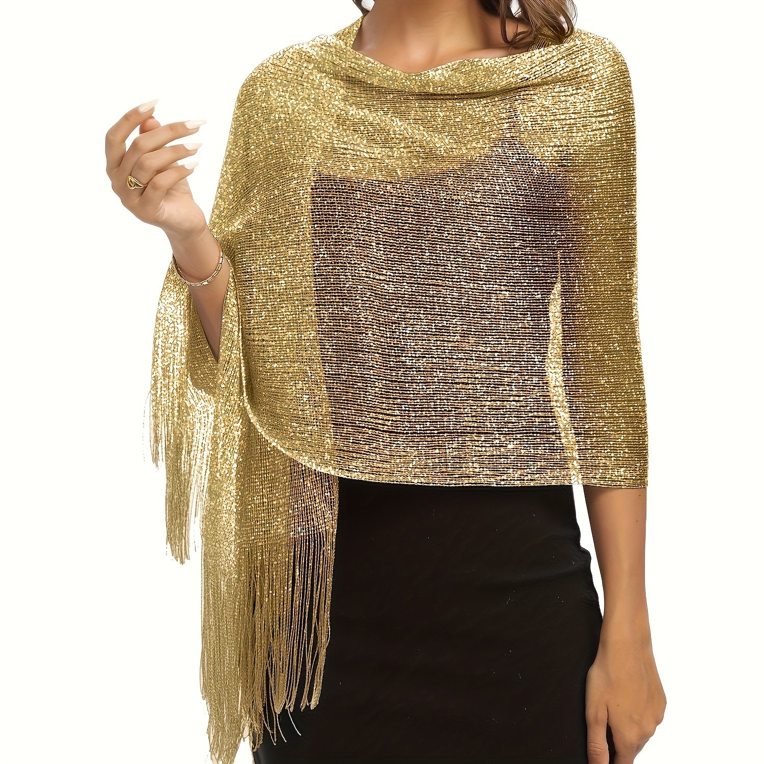 Elegant Black/Silver/Golden Sequin Shawl with Tassel Detail - Perfect for Beach, Evening, Wedding & Party Accessories, Non-Stretch, Beach Cover-Up Elegant Shawl