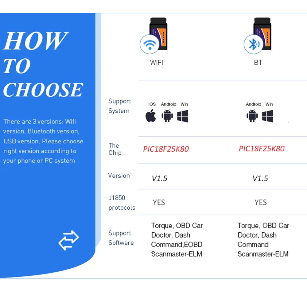 ELM327 V1.5 OBD2 Scanner PIC18F25K80 BT/Wifi ELM 327 OBD Car Diagnostic Tool For Android /IOS PK Vgate Icar2 Code Reader