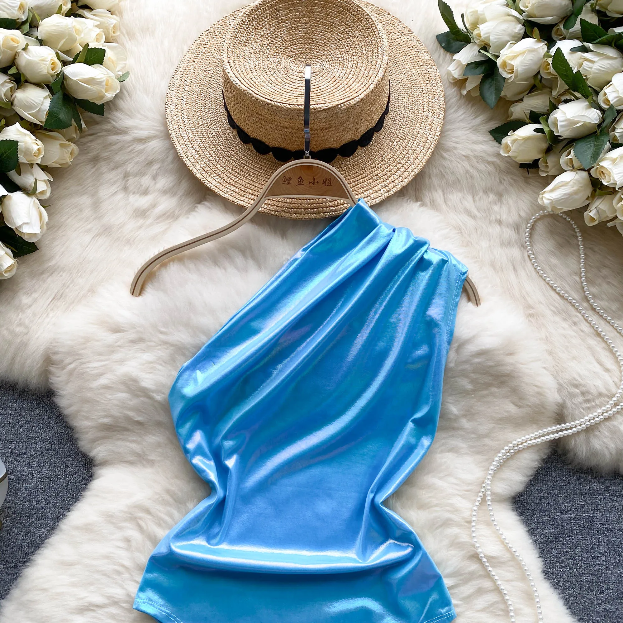 Fashion Beach Bikini Playsuits Women One Shoulder Slim Open Crotch Sexy Swimsuits Summer Backless Sensual Bodysuits