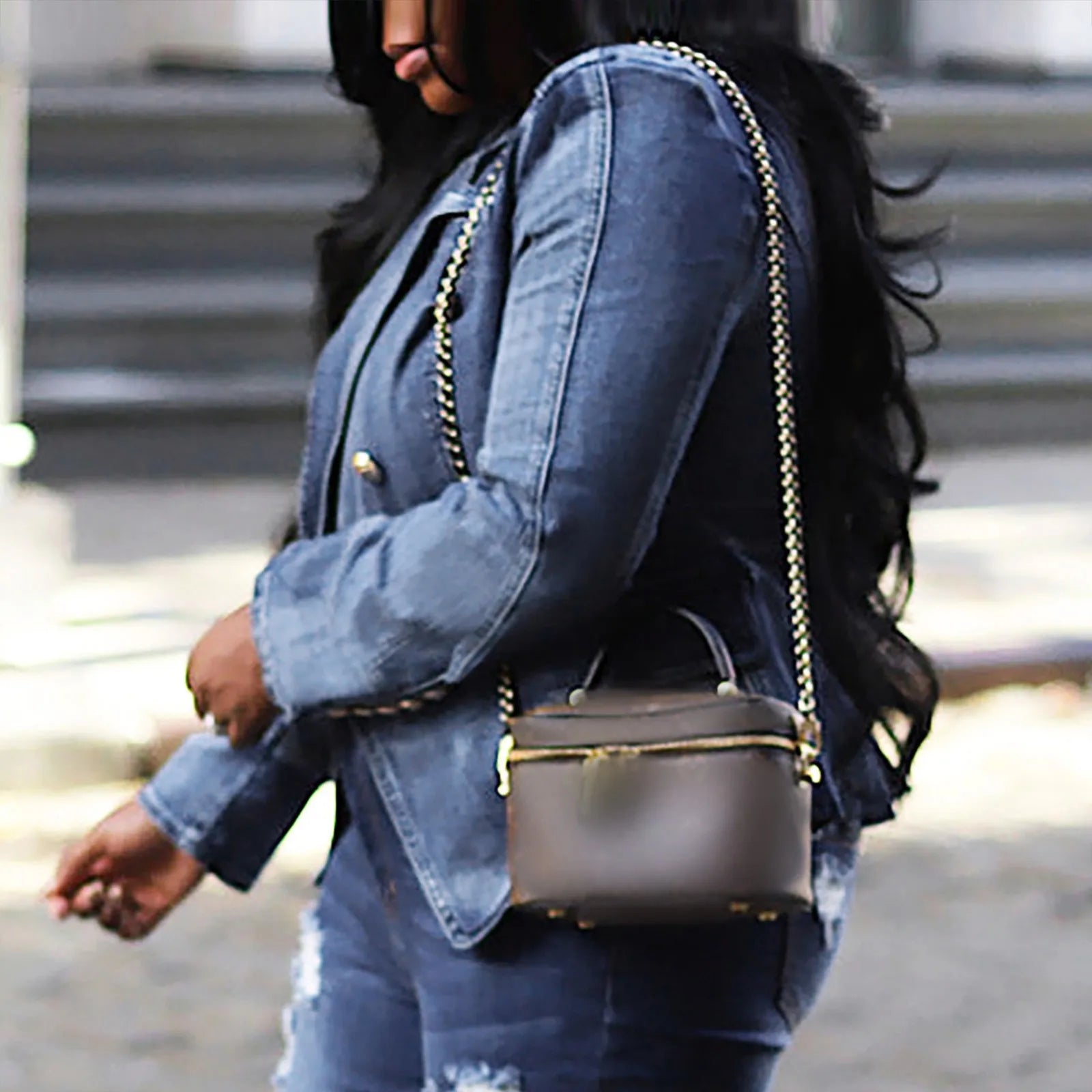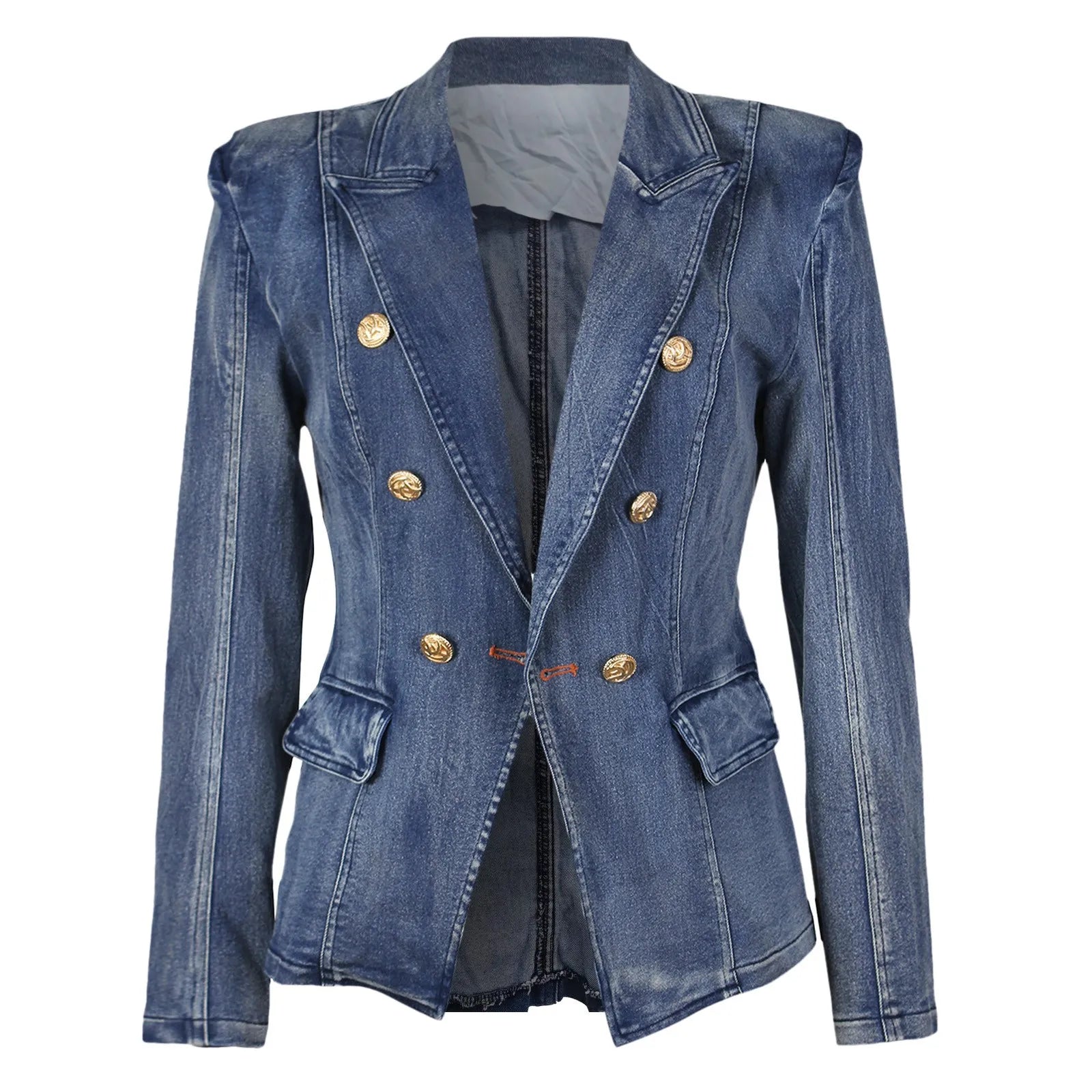 Fashion Demin Jacket Women Double Breasted Notch Lapels Slim Blue Vintage Washed Blazer Jeans Jacket Women's Denim Jackets