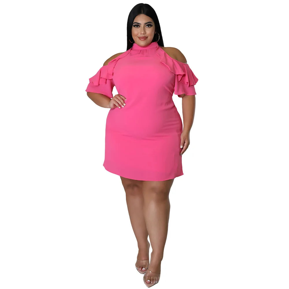 Fashion Ruffles Plus Size Women Clothing Sexy Off Shoulder Mini Dress Summer Party Club Wear
