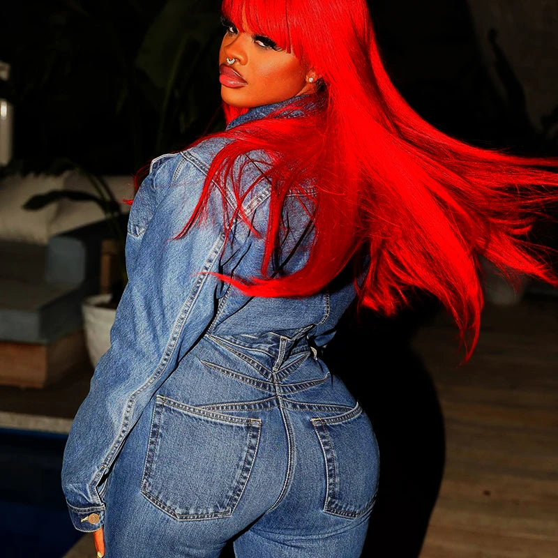 Fashion Women's Denim Jackets Patchwork Lapel Single Buttons Pockets Long Sleeve Short Blue Coat