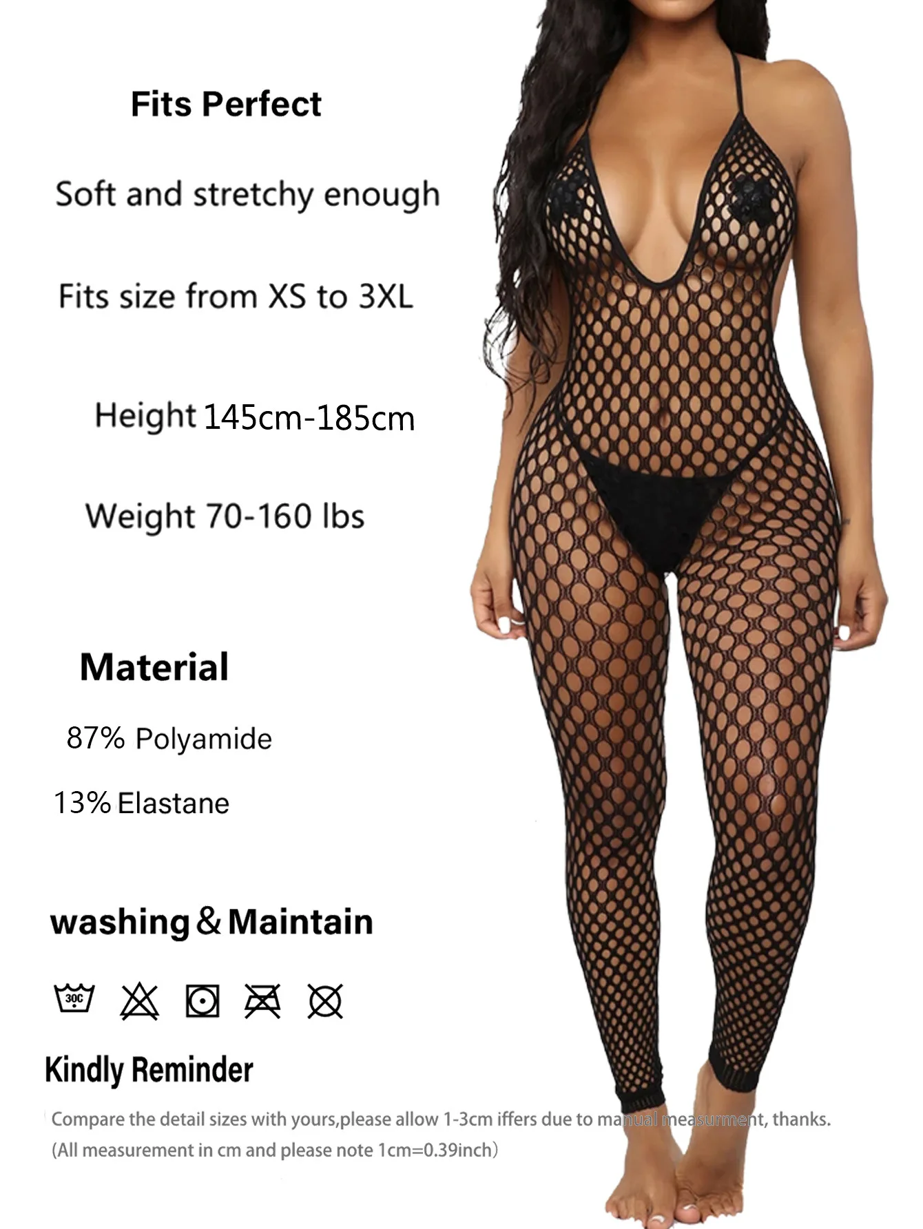 Fishnet Bodysuit Catsuit Womens Transparent Open Bra Open Crotch Sex Clothes See Through Body Stockings Mesh Hot Erotic Lingerie