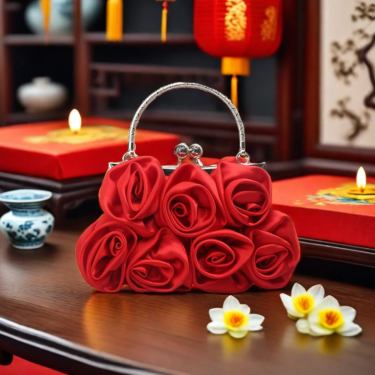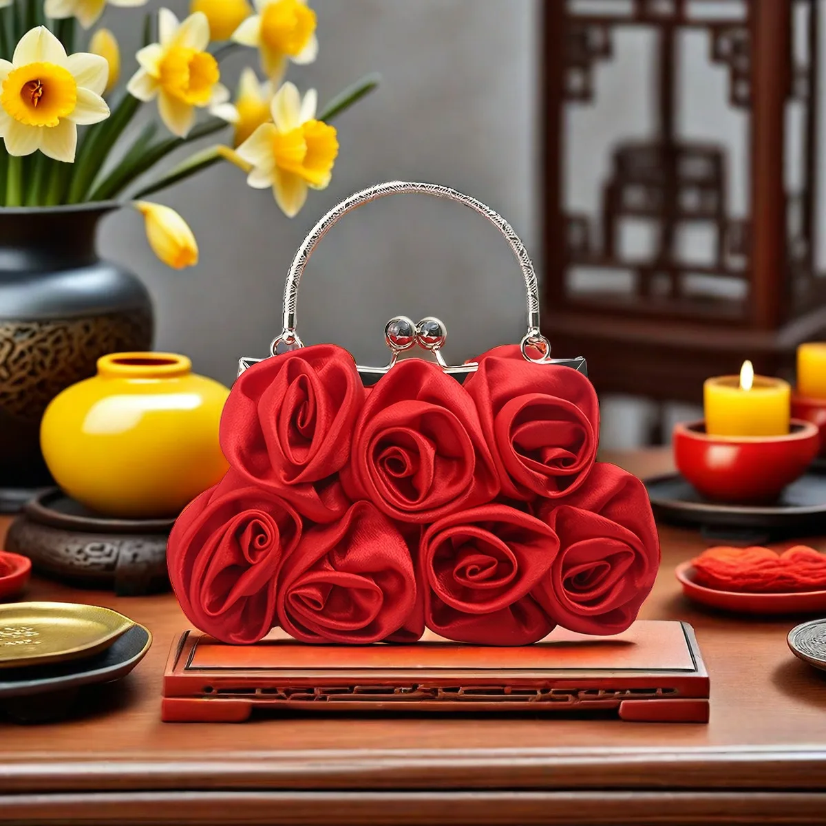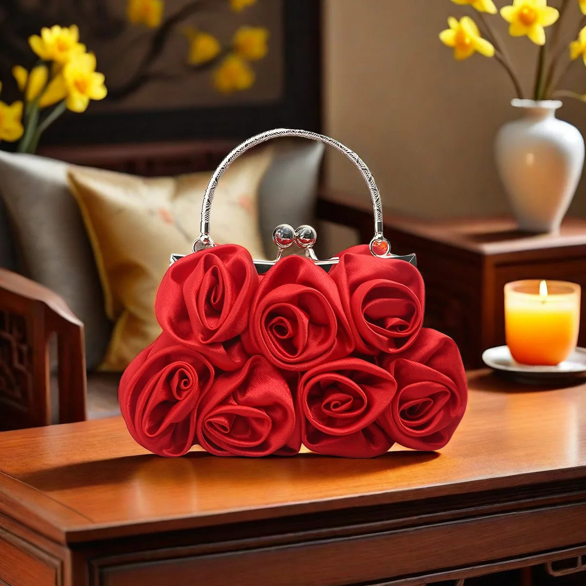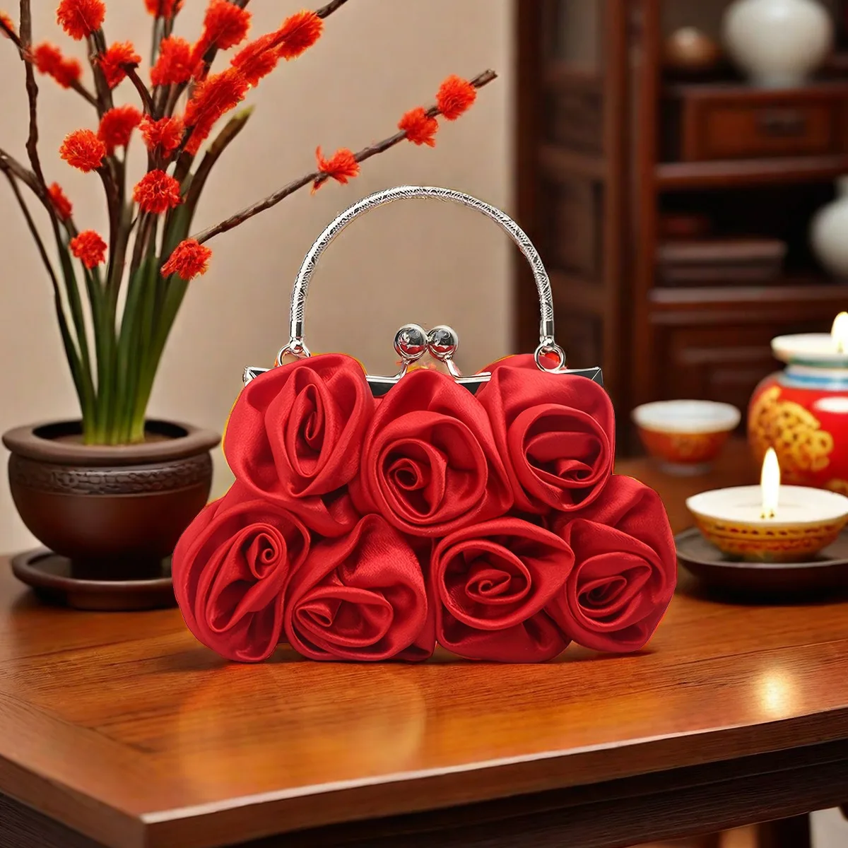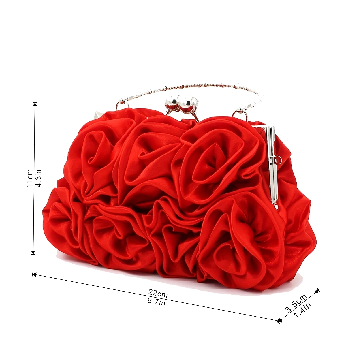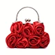 Flower Decor Kiss Lock Metal Handle Clutch, Elegent Textured Frame Handbag Purse, Cocktail Prom Dinner Evening Bag Gift to girl
